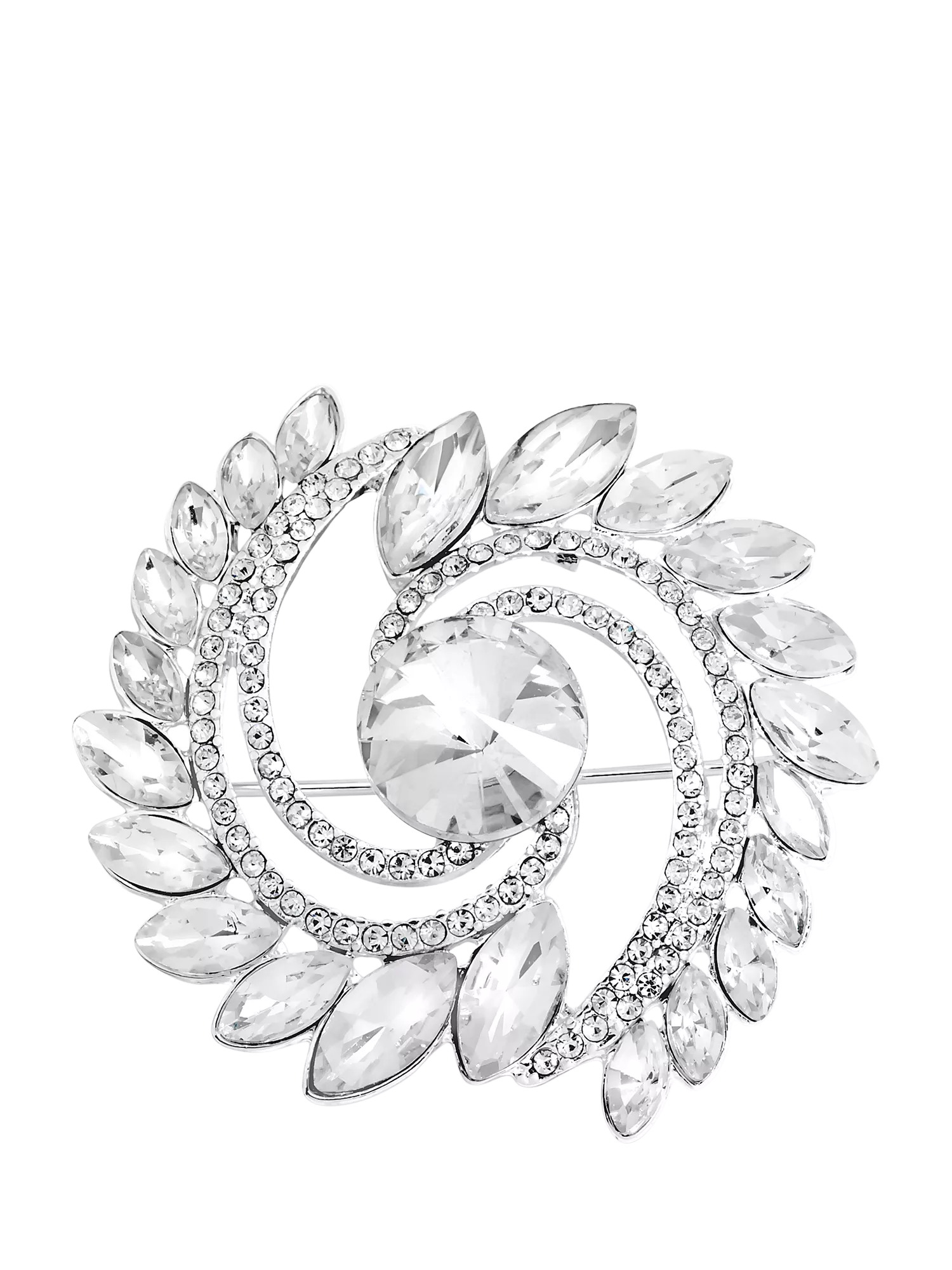 Jon RichardMixed Crystal Swirl Brooch, Silver