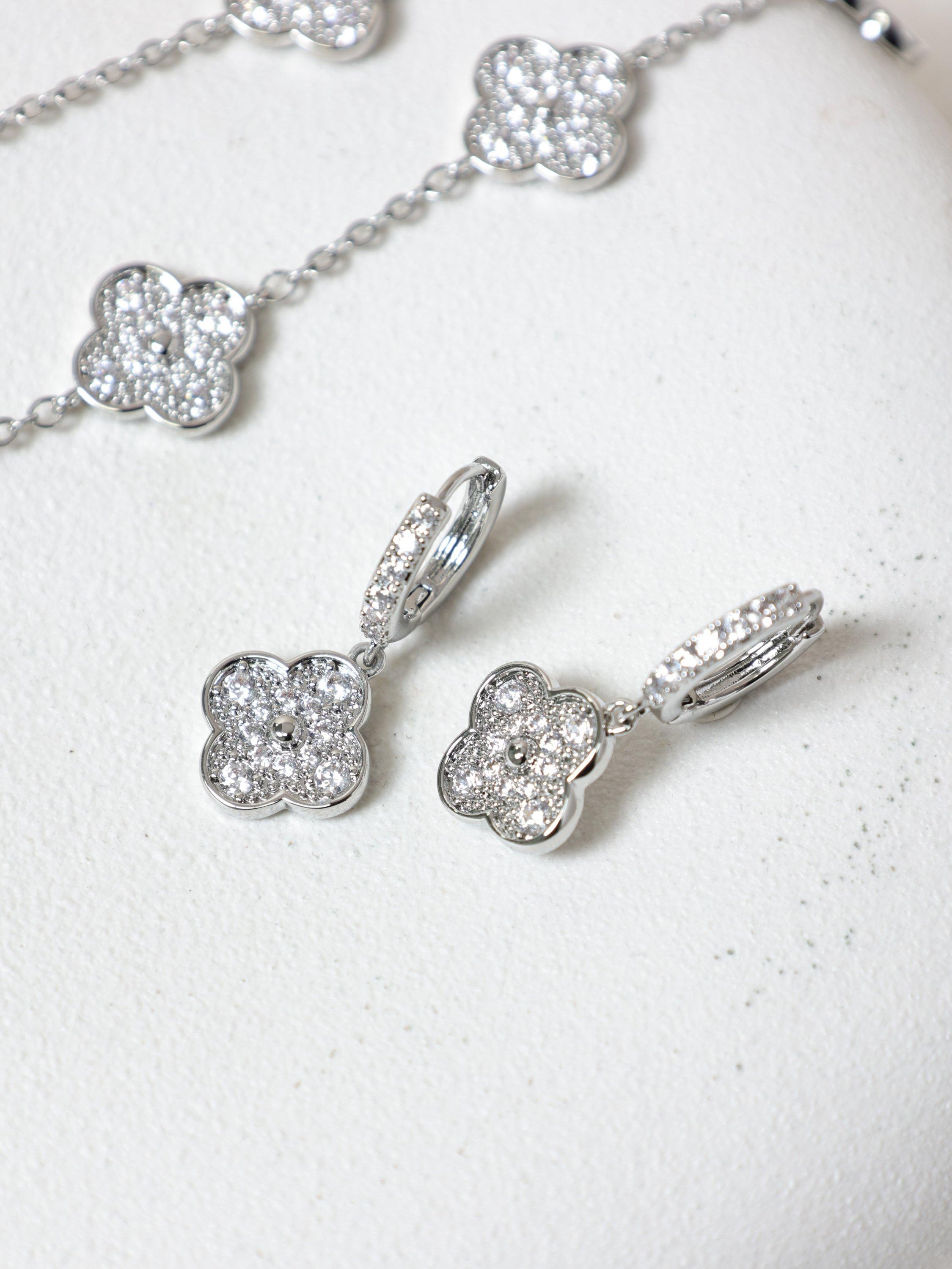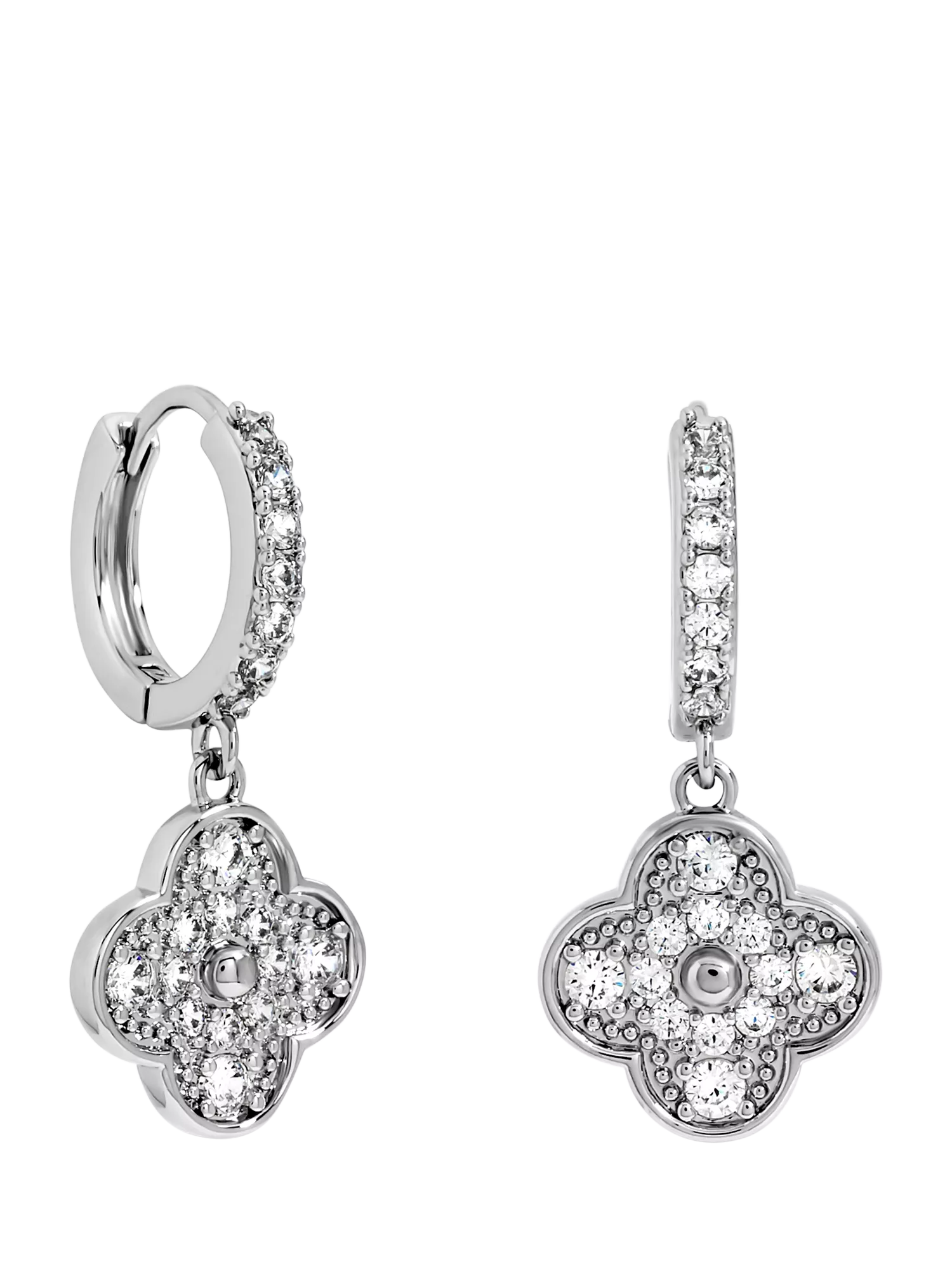 The Rhodium Plated and Pave Clover Earrings are expertly finished and designed with meaning. Featuring Pave crystals that catch the light from every angle and finished in shiny rhodium plating, this graceful design adds a touch of luck and timeless shine. It is the perfect piece to elevate your jewellery collection. Suitable for pierced ears only.