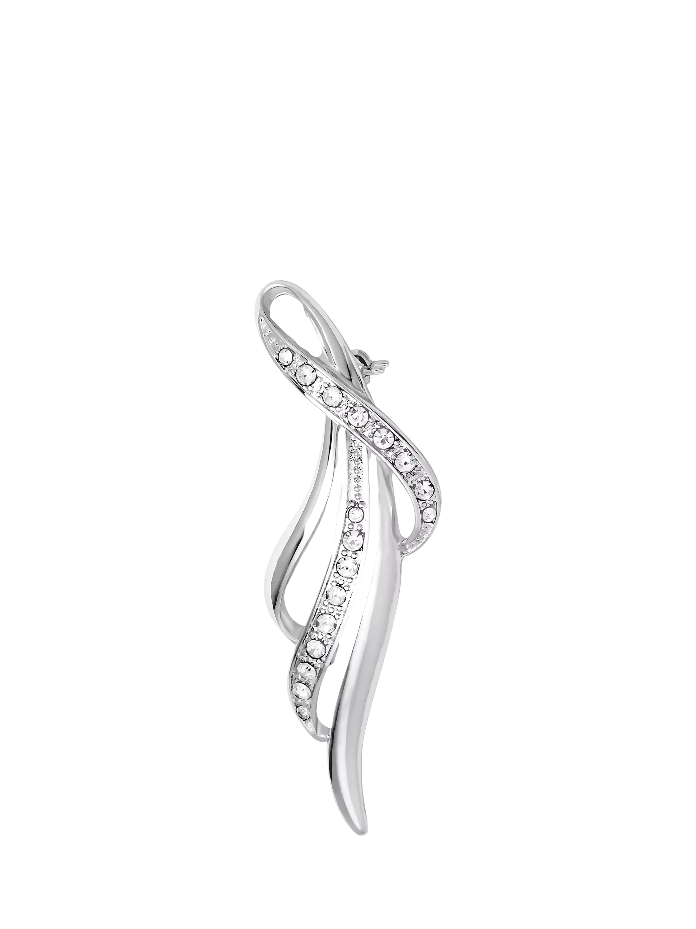 The Silver Plated and Pave Contemporary Long Brooch is expertly finished, designed to bring effortless elegance to any occasion. Finished in rich silver plating, this graceful design adds a touch of timeless shine. It is the perfect piece to elevate any outfit.