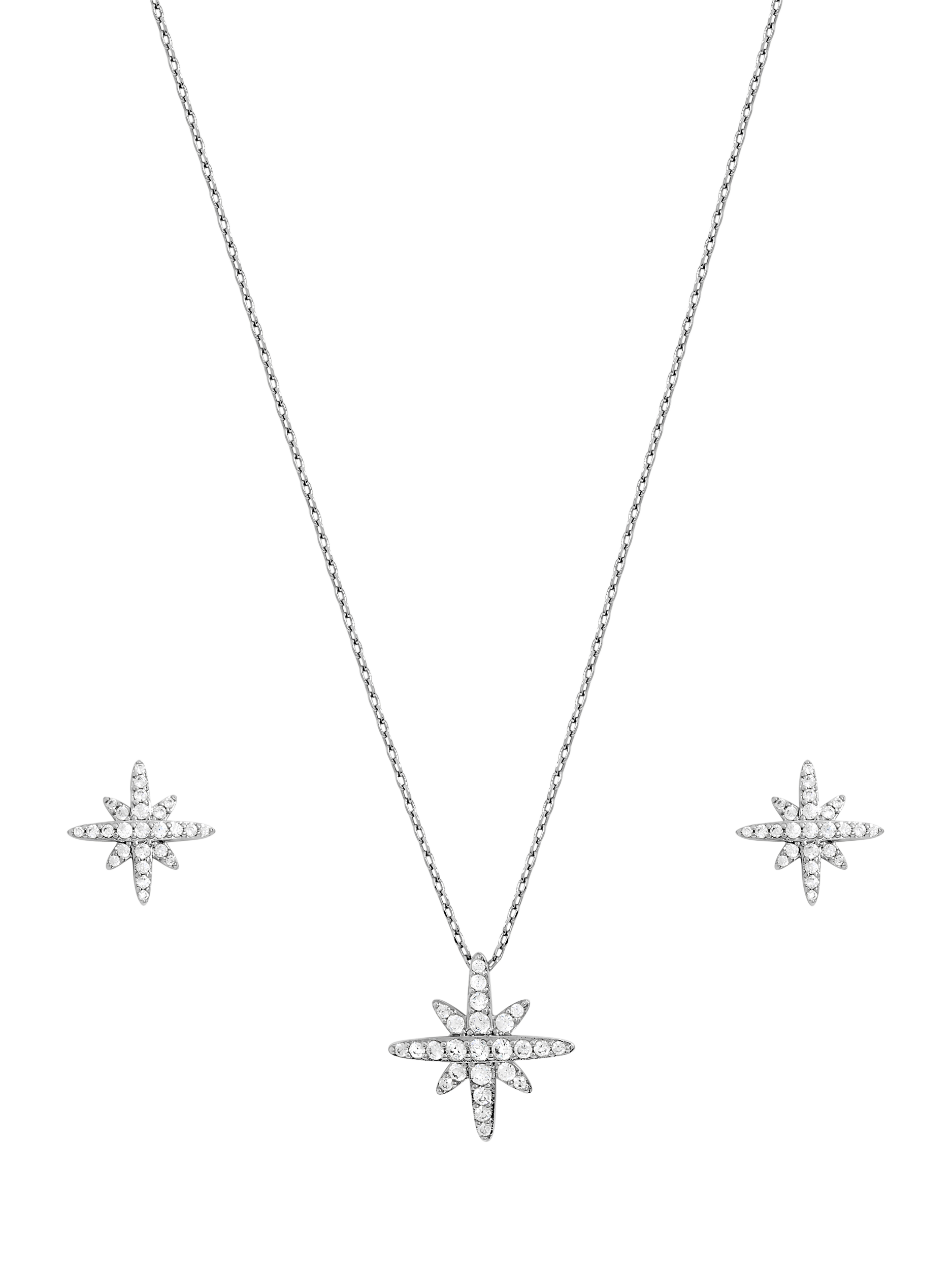 The Rhodium Plated and Pave Star Box Set is designed to add a touch of celestial charm to any look. Featuring star designs, accented with sparkling crystals and finished in radiant rhodium plating, this elegant set is the perfect way to bring a little stardust to your jewellery collection. The earrings are suitable for pierced ears only.