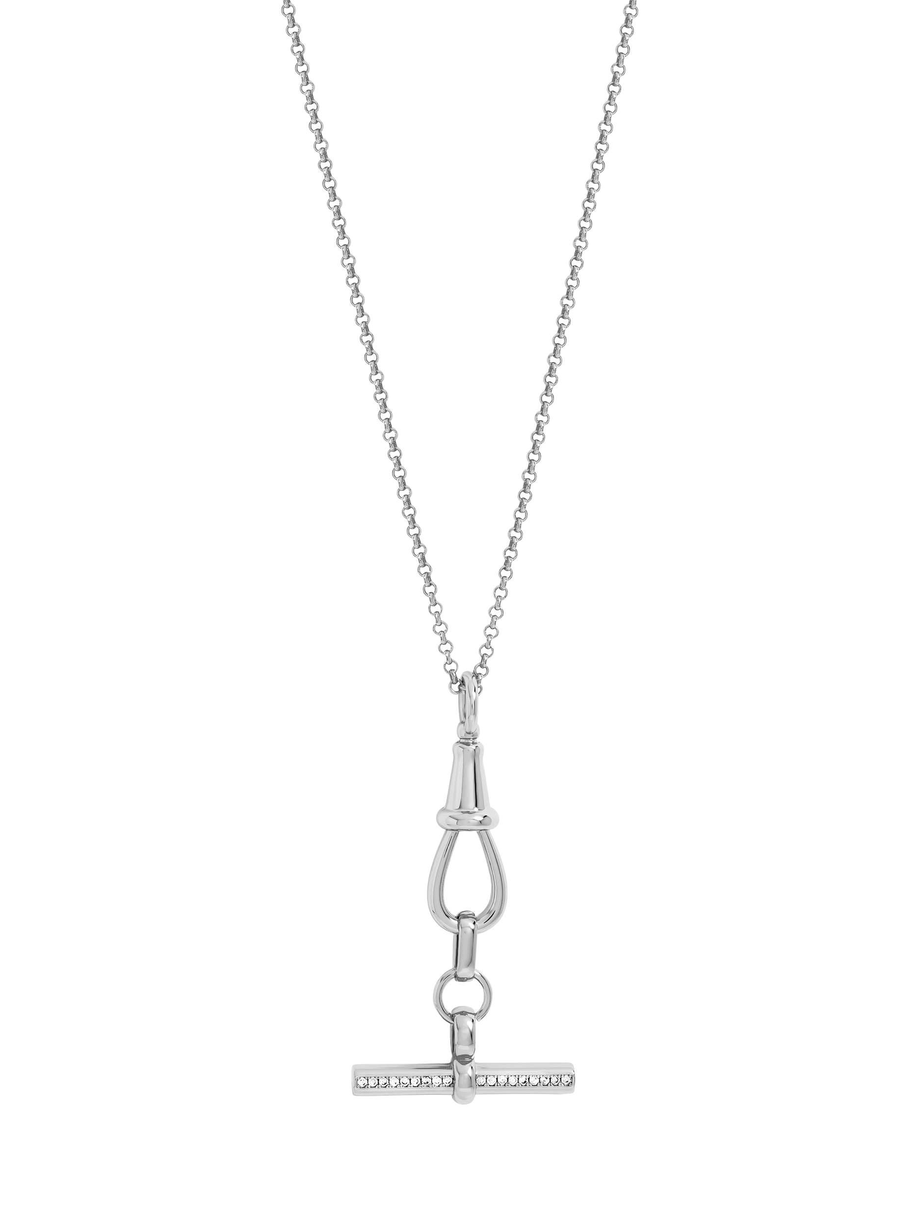 The Jon Richard Silver Plated pave T-Bar Necklace is a refined and contemporary addition to any jewellery collection. Featuring a polished silver plated T-bar pendant encrusted with sparkling pave stones, it catches the light beautifully and adds a striking focal point to the neckline. Perfect for both day and evening wear, this necklace brings modern elegance and subtle glamour to any ensemble.