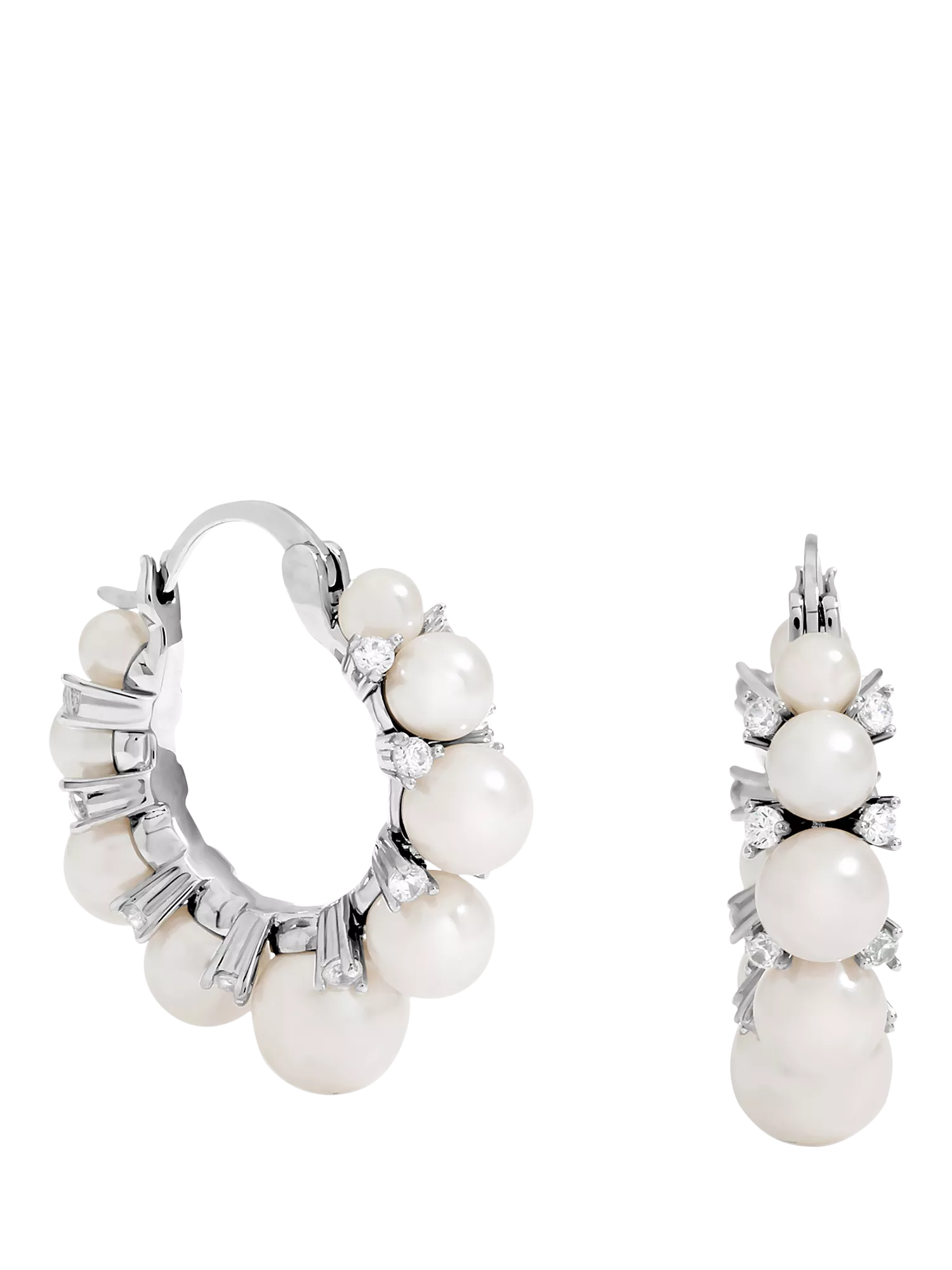 Jon RichardPearl and Crystal Hoop Earrings, Silver
