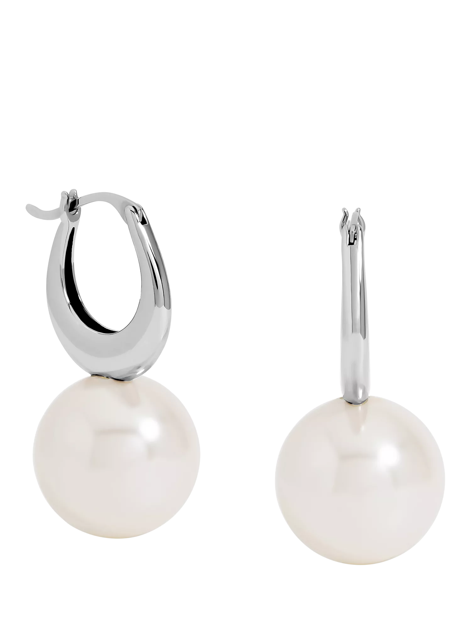 The Rhodium Plated Polished and Pearl Hoop Earrings are designed to turn heads. Featuring shimmering pearl detailing, these hoop earrings bring bold elegance to any occasion. Perfect for evening wear, weddings, or whenever you want to make a sophisticated statement. Suitable for pierced ears only.