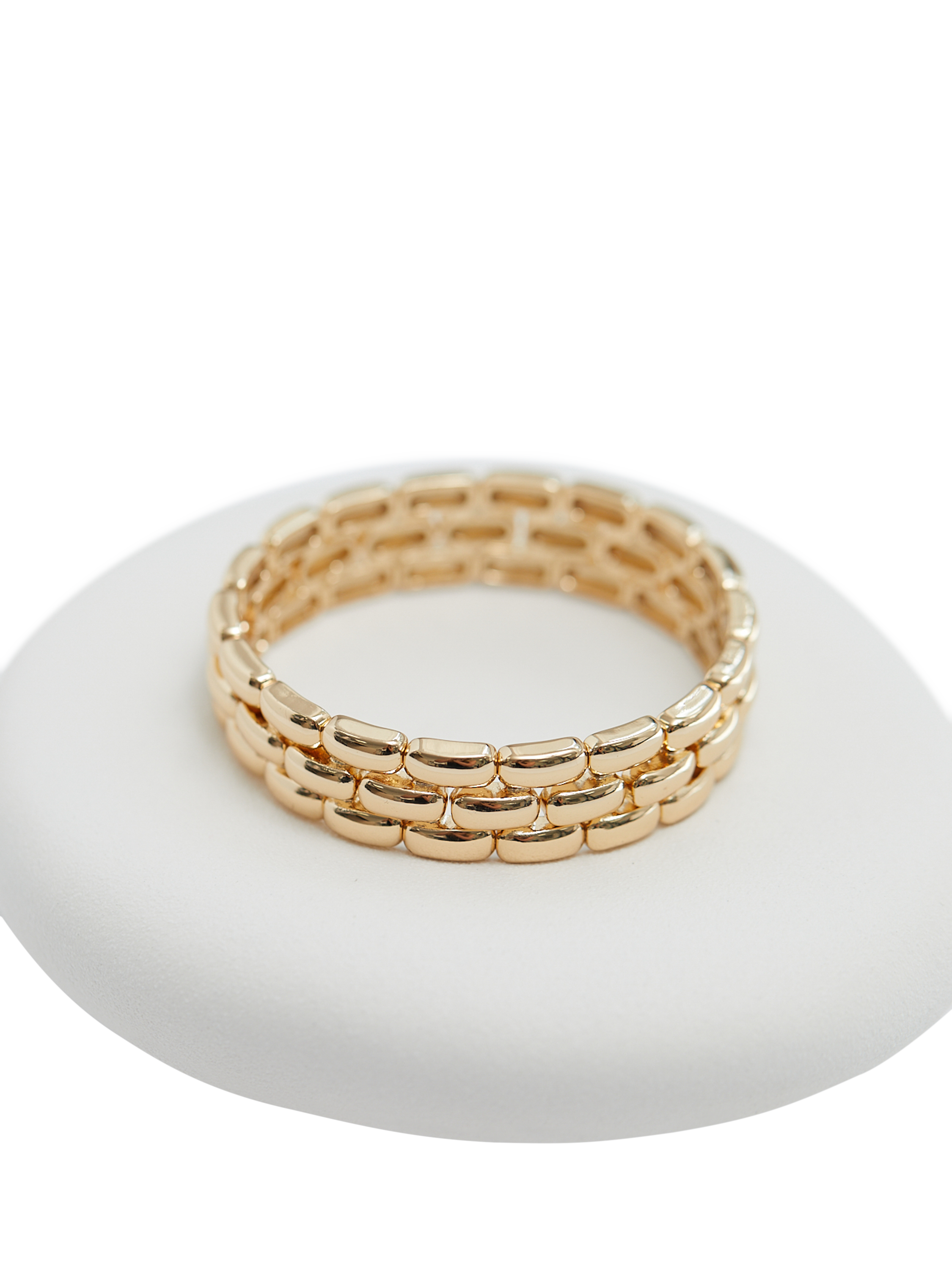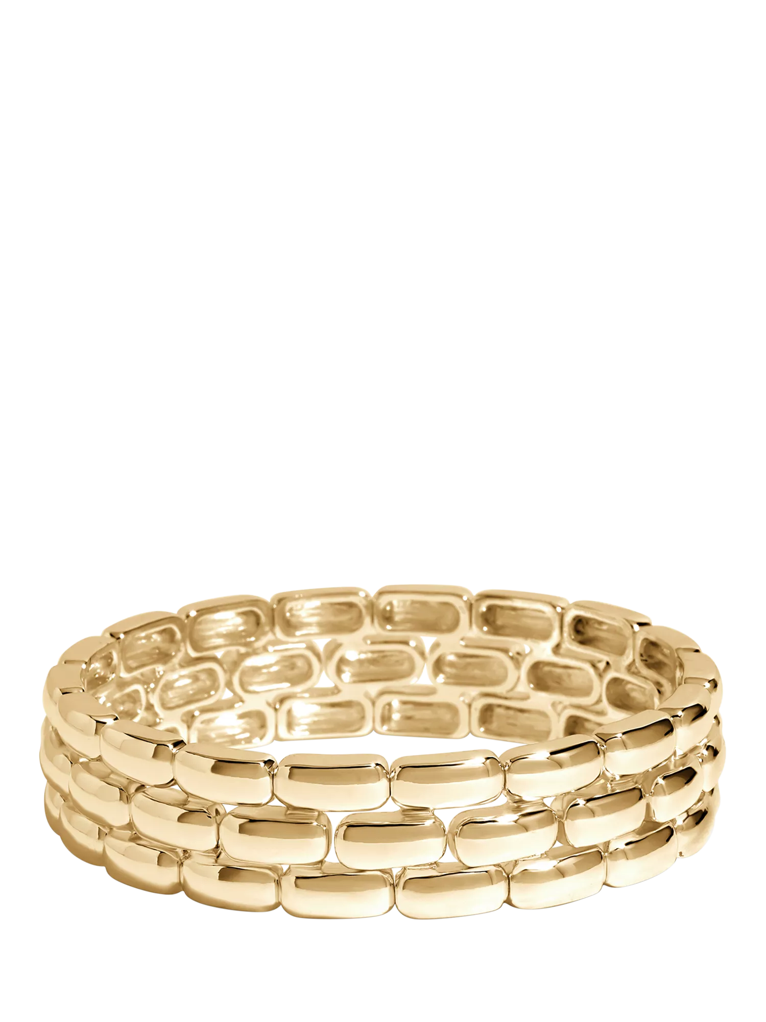 Designed with three rows of polished links, this stretch bracelet offers an effortless statement style.