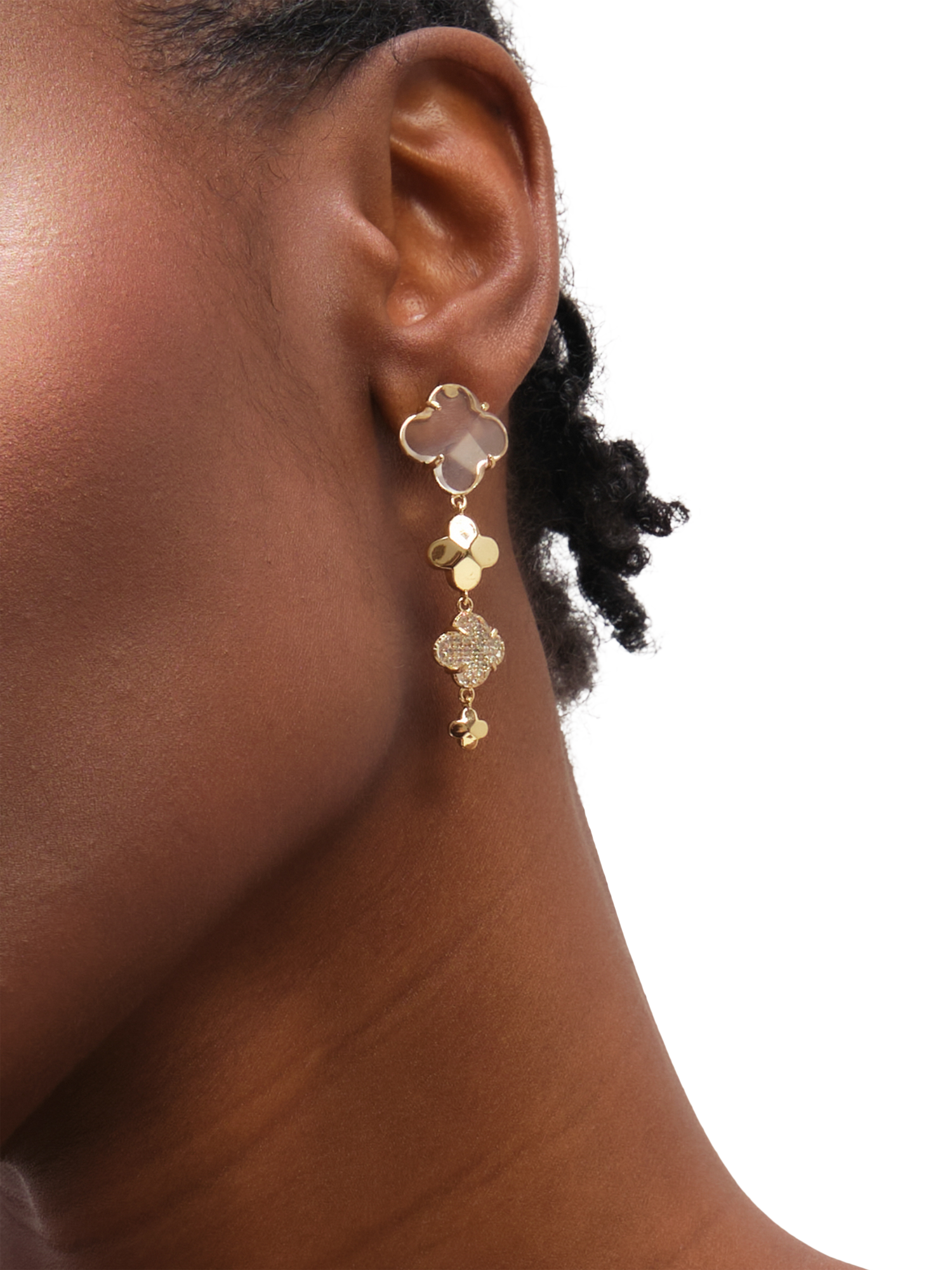 The Jon Richard Gold Plated Polished Crystal Clover Earrings are a graceful and sophisticated addition to any jewellery collection. Featuring sparkling crystals set within polished gold clover motifs, they catch the light beautifully with every movement. Perfect for both day and evening wear, these earrings add refined elegance and timeless charm to any ensemble. Suitable for pierced ears only.