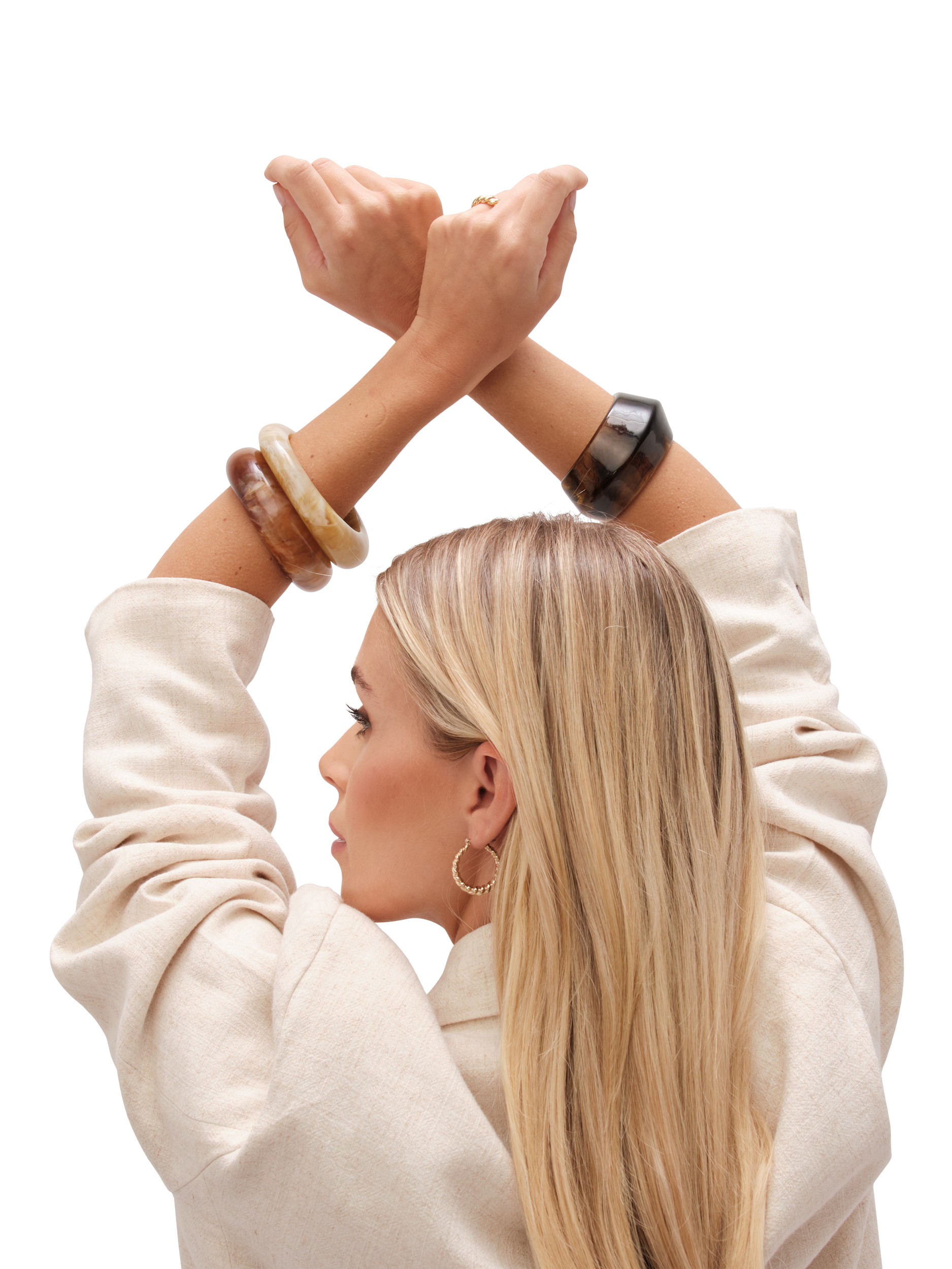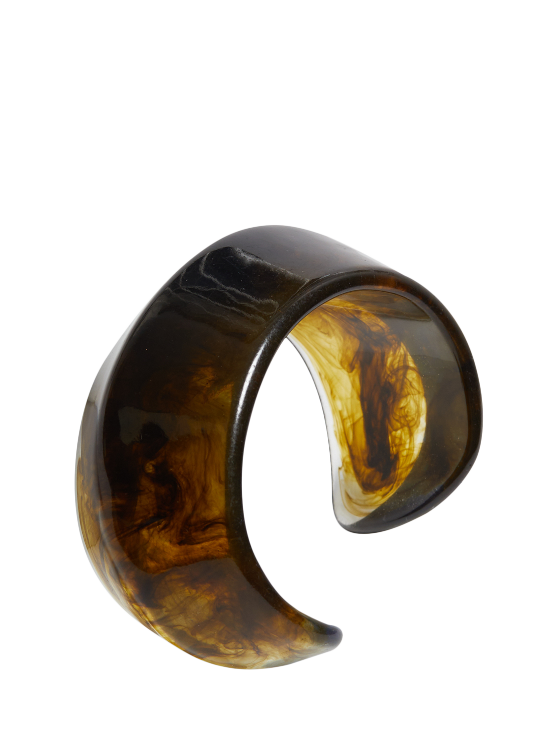 This resin cuff is a stylish and contemporary accessory. Lightweight and comfortable to wear, this cuff makes a statement on its own or can be stacked with other pieces for a layered effect. A versatile and fashionable addition to any collection.