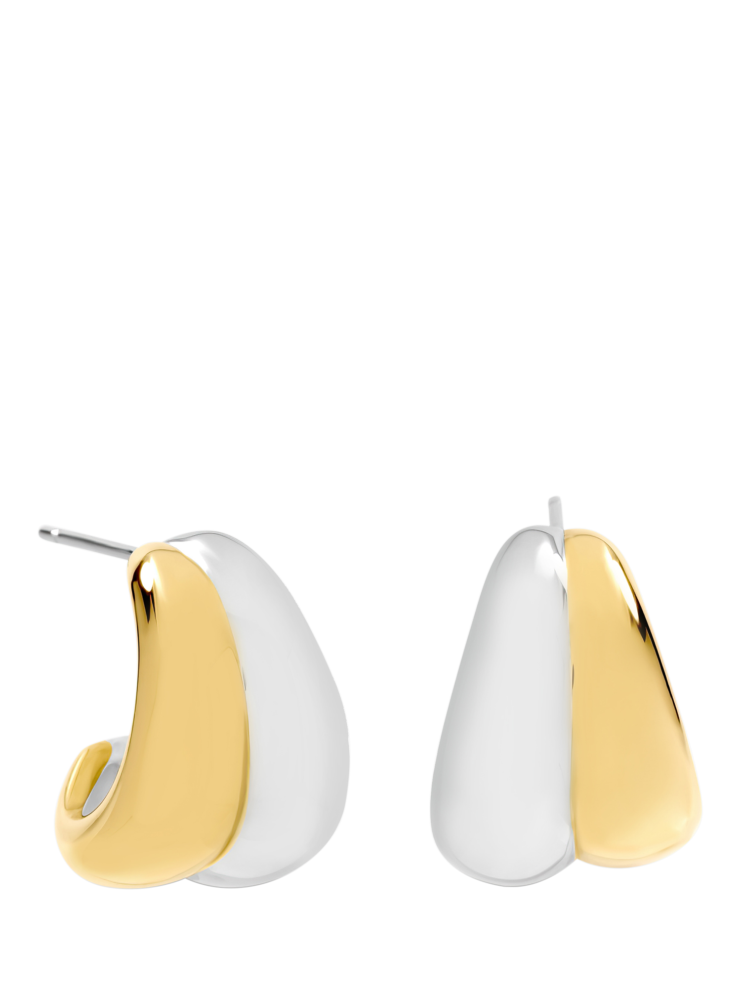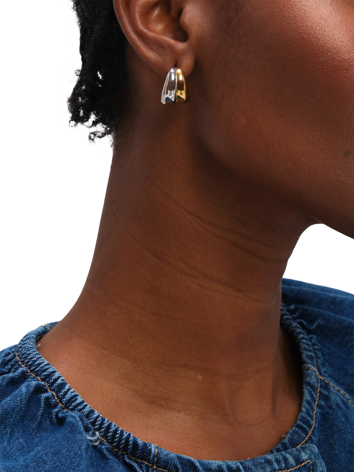 These ribbed dome earrings utilize a functional two-tone metal for a smart, contemporary style. The waterproof stainless steel build guarantees they are tough enough for daily rotation while maintaining their refined style. Suitable for pierced ears only.
