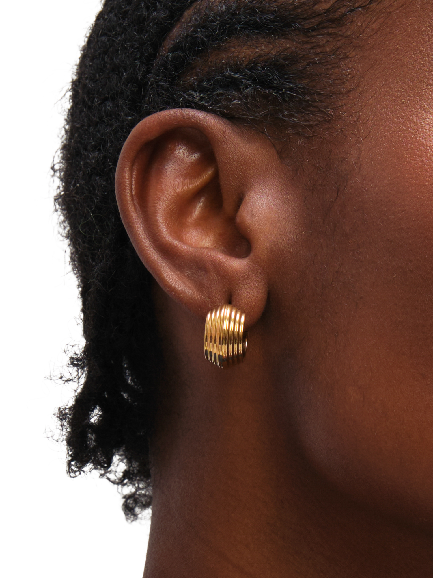 The bold, ribbed texture of these chubby hoops adds contemporary dimension to any look. Built entirely with waterproof stainless steel, these are essential statement pieces designed for permanent wear and maximum resilience. Suitable for pierced ears only.