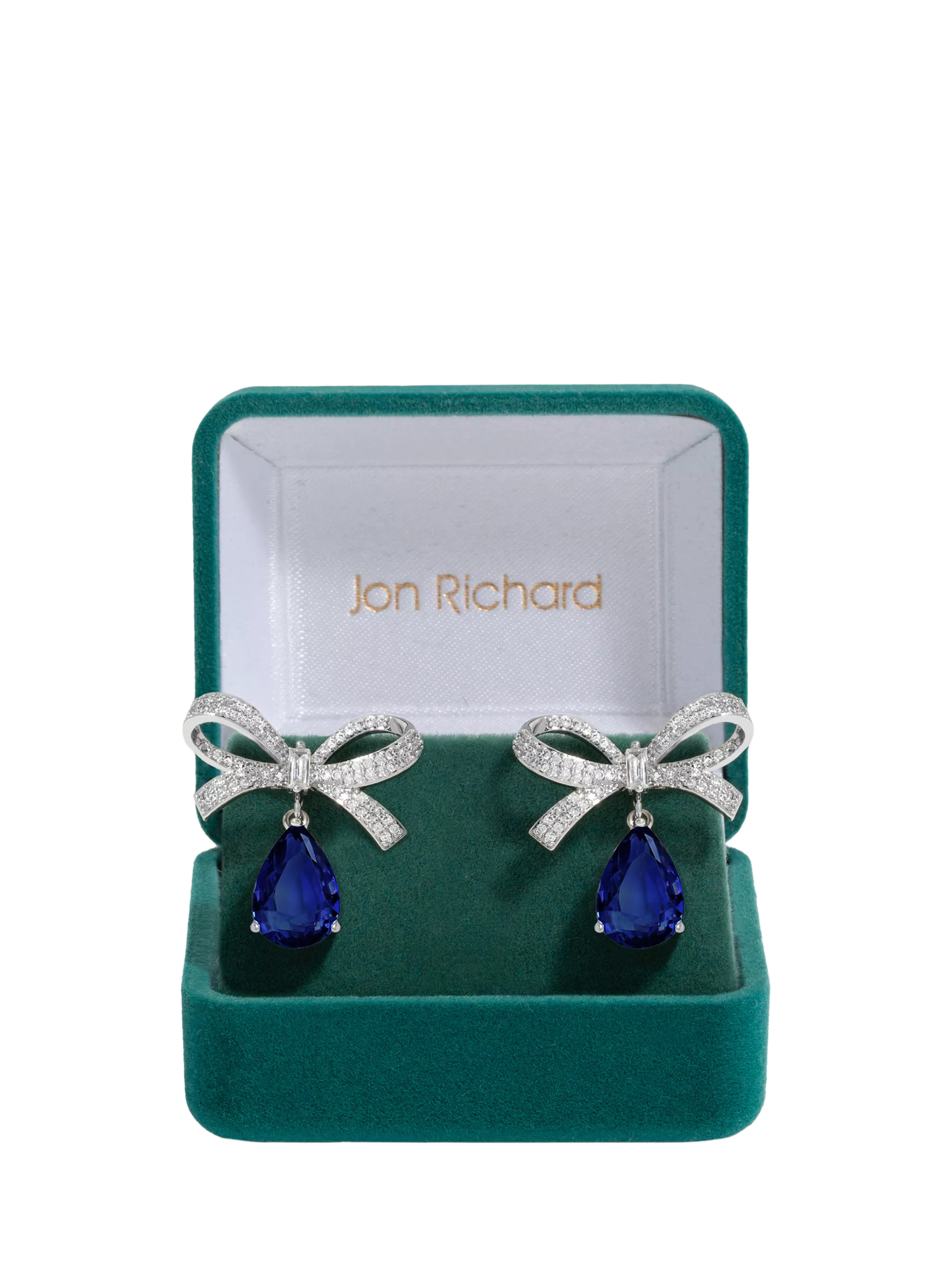 Jon RichardSapphire Bow Drop Earrings, Silver/Blue