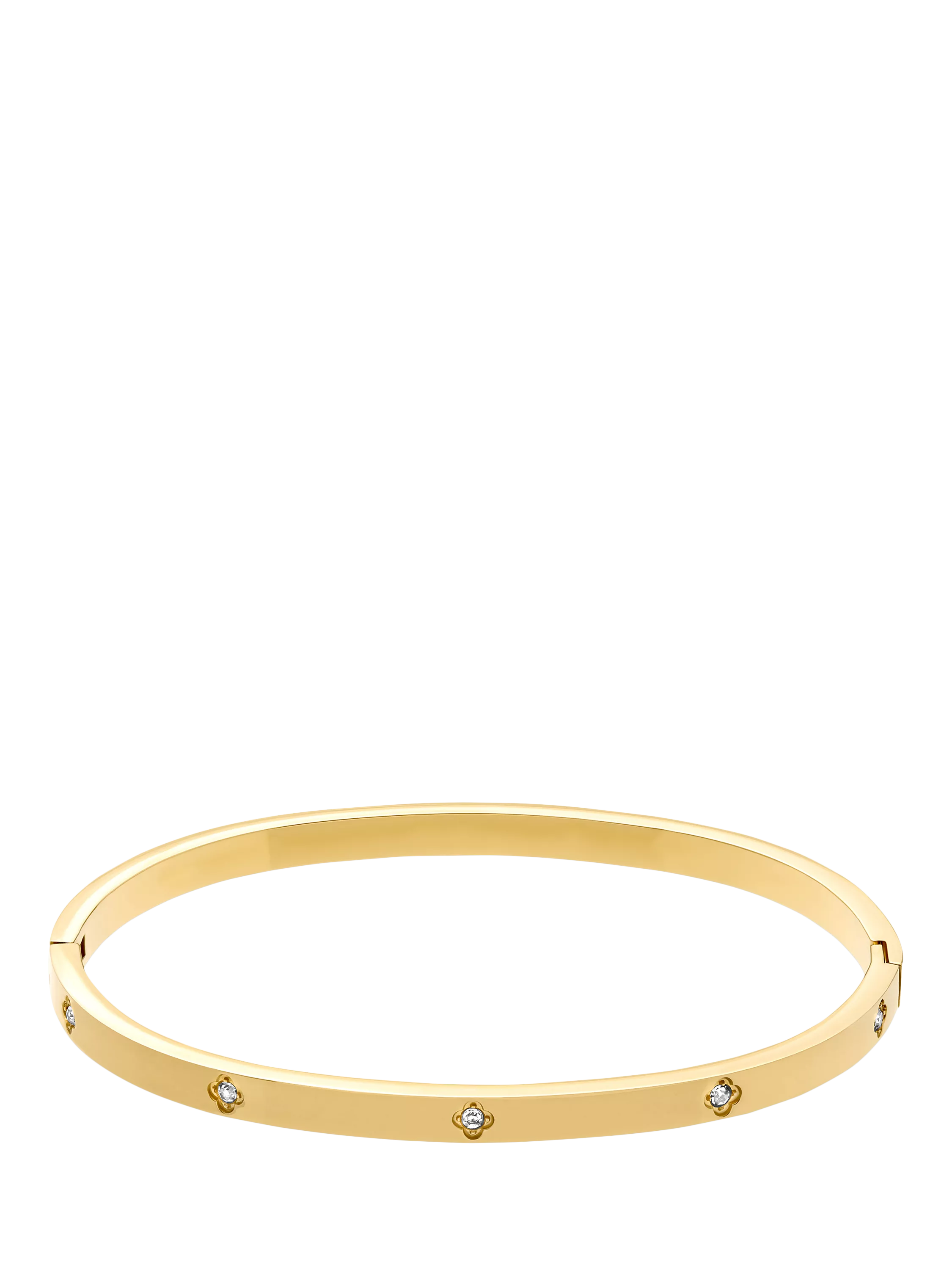 This clover bangle is a symbol of luck designed for everyday wear. With its radiant plated finish and timeless clover detail, this bangle is fully waterproof, so you can shine confidently from morning to night.
