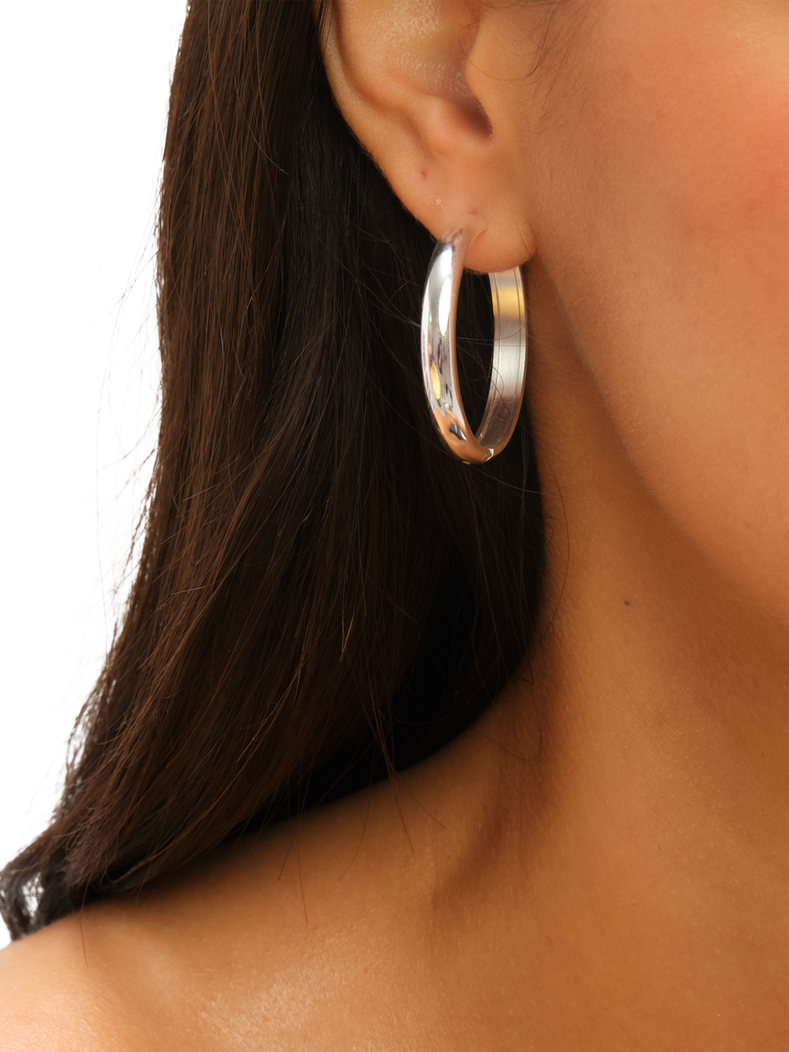 These large flat surface hoop earrings feature a sleek, polished design and are perfect for elevating any look. Everyday elegance, made to last.