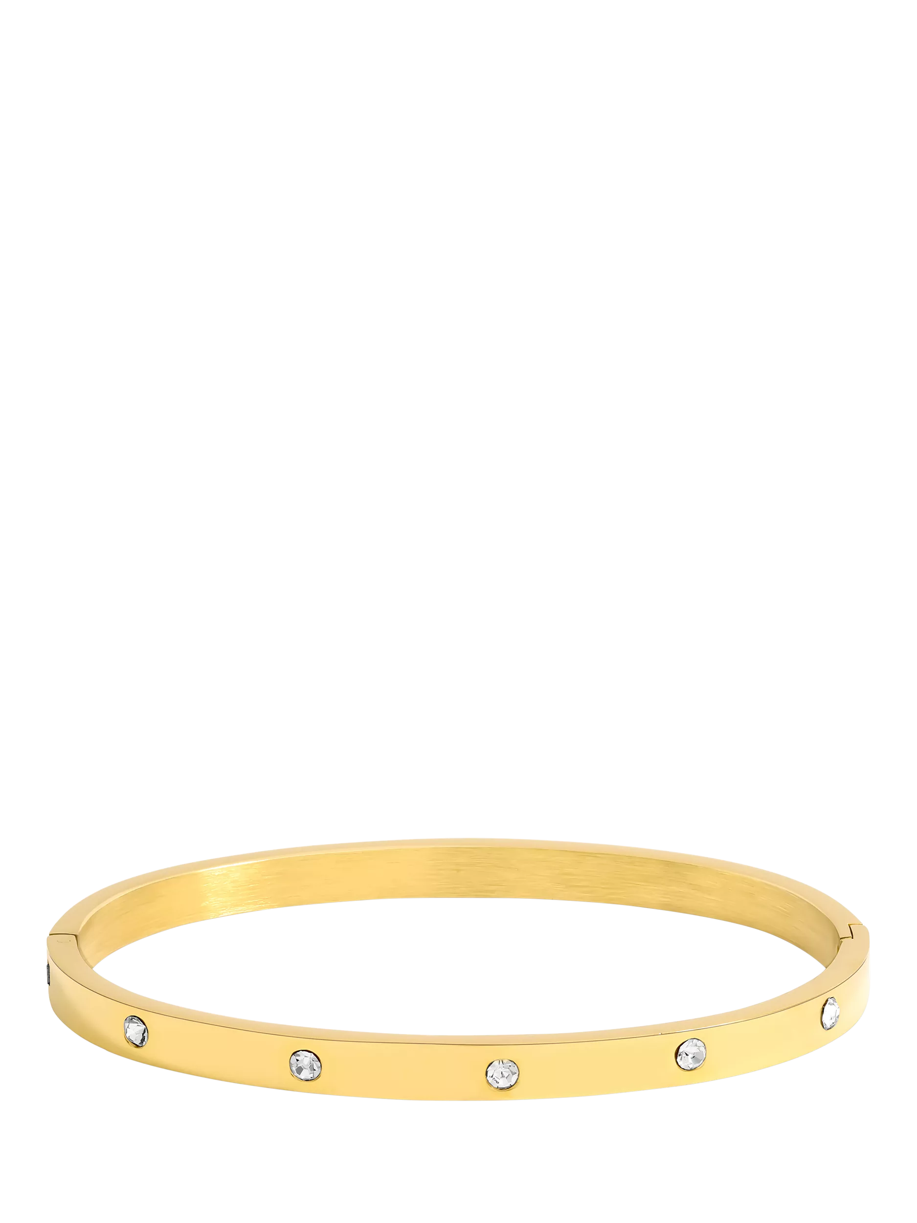 This crystal polished bangle is a staple piece with a timeless design. Crafted from stainless steel and finished in gold plating, this polished bangle is adds a subtle touch of sparkle, perfect for stacking with other Jon Richard waterproof designs.