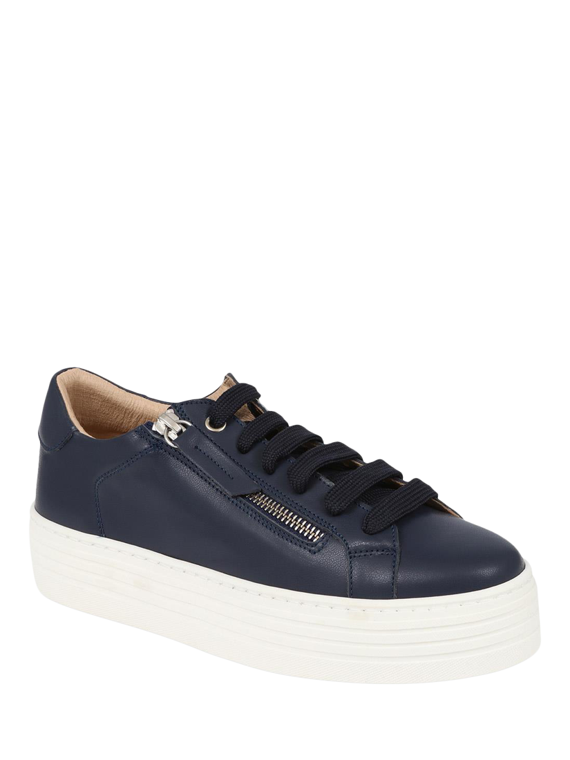 Introducing Amaliada, Jones Bootmaker's leather platform lace-up trainers, a marriage of low-key luxury and smart-casual charm. Crafted from premium leather and set on an elevated platform, they bring an air of understated sophistication to any look.