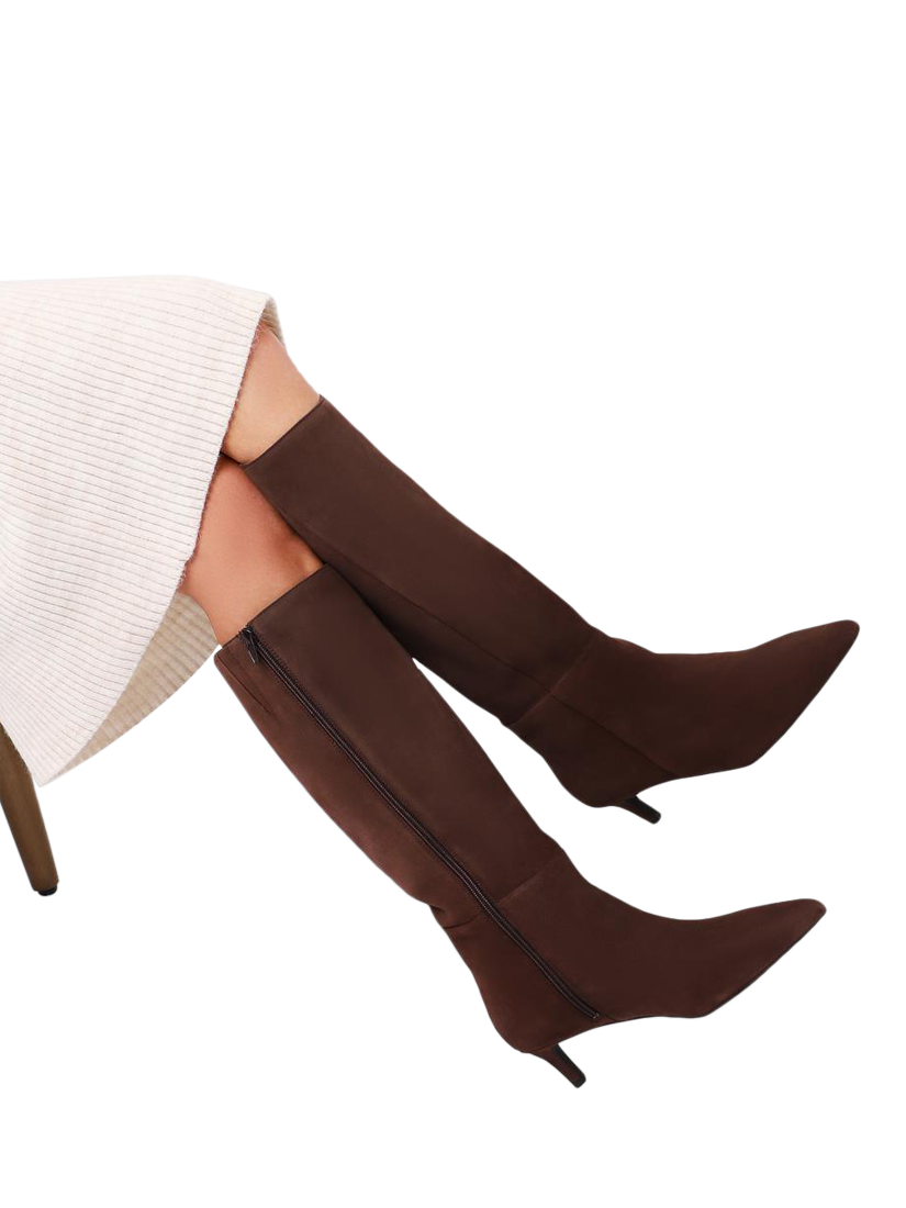 Turn heads with the Catia leather long boots, featuring a sleek stiletto heel and a suede upper that exudes sophistication. The convenient zip-up fastening ensures effortless wear, while the elegant design makes these boots ideal for making a bold statement wherever you go.