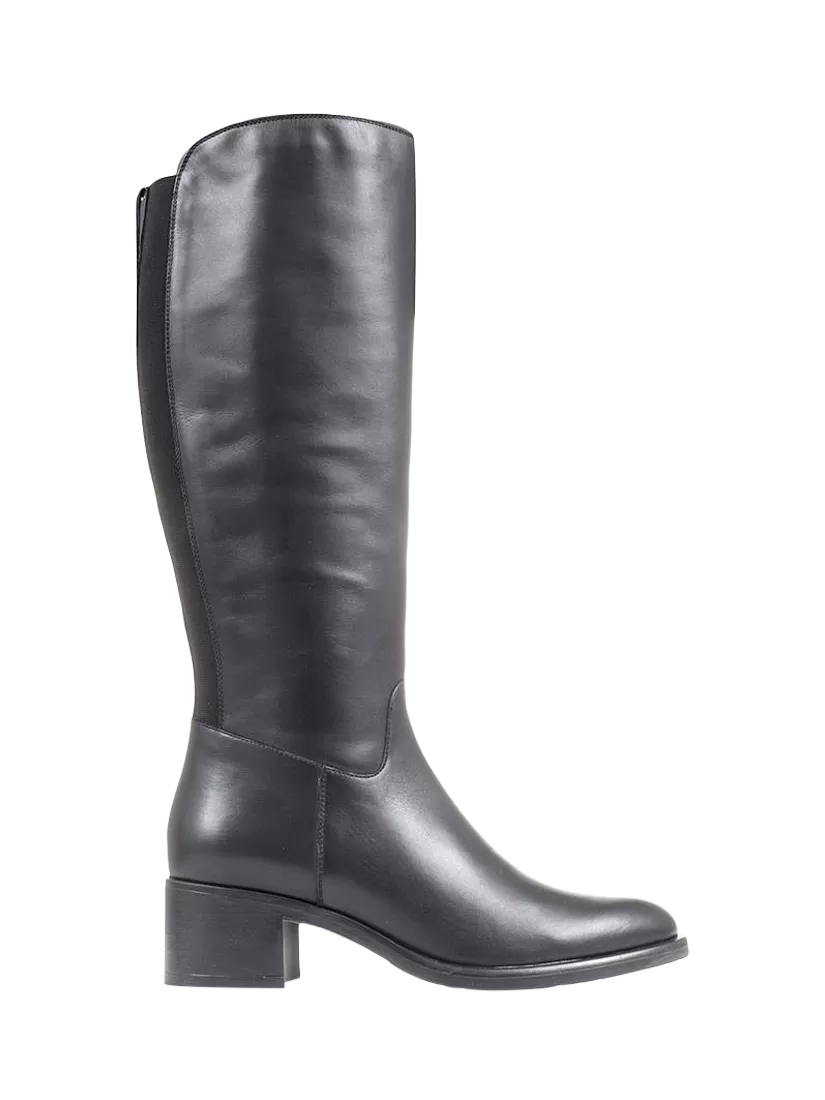 Inspired by a classic rider boot, the Donatella knee boots from Jones Bootmaker will be a reliable companion that will accompany you through every smart casual occasion this season. Crafted with smooth and supple leather, these long boots are sculpted with a timeless silhouette that can be slipped on with dresses or jeans. The secret to their flattering fit? It lies in the twin elastic seams that run down the back of the boots so they hug your shape exactly. Signed off with a low block heel and full length side zip fastening.