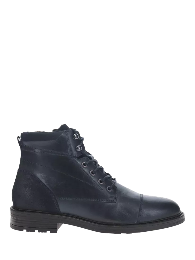 Experience premium comfort with the Dusseldorf leather lace-up boots. Crafted with a leather upper and insole, these boots offer durability and a refined look. Additionally, the cushioned ankle cuff provides enhanced comfort, making them ideal for all-day wear.