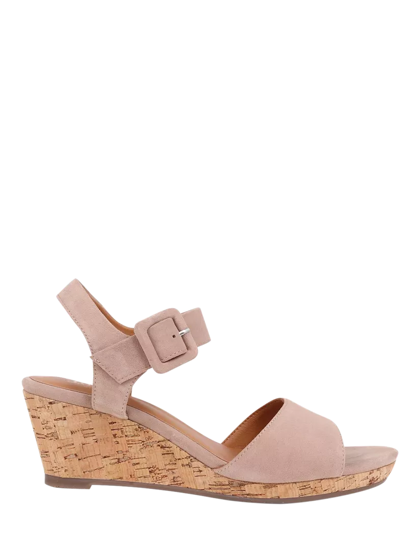 Step into summer elegance with these open-toe leather wedges, featuring a chic cork sole and a luxuriously soft suede upper. These wedges perfectly marry comfort and style, making them an ideal choice for sun-drenched days and balmy summer evenings.