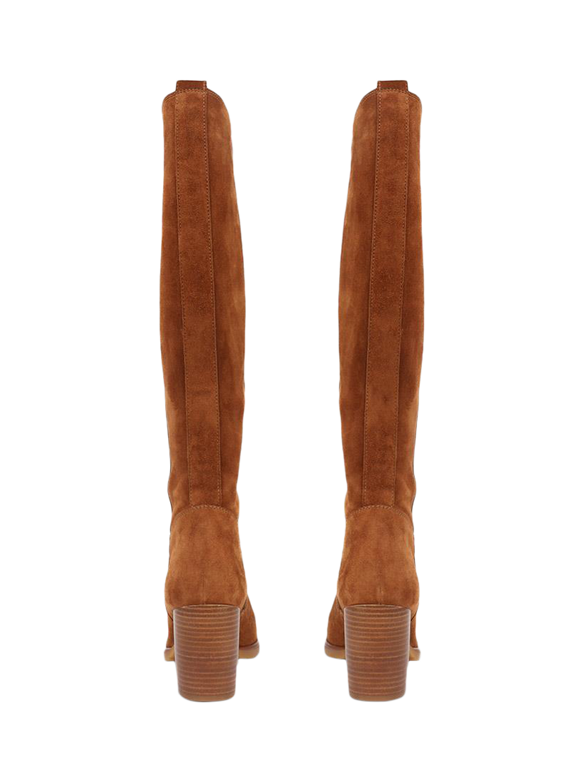 The new season sees the return of knee-high boots. Designed in rich tactile suede, these long boots from Jones Bootmaker are styled with a slouchy silhouette, ideal for layering under mid-length dresses. Completed with an inside zip running up half of the boot and balanced on smooth block heels.