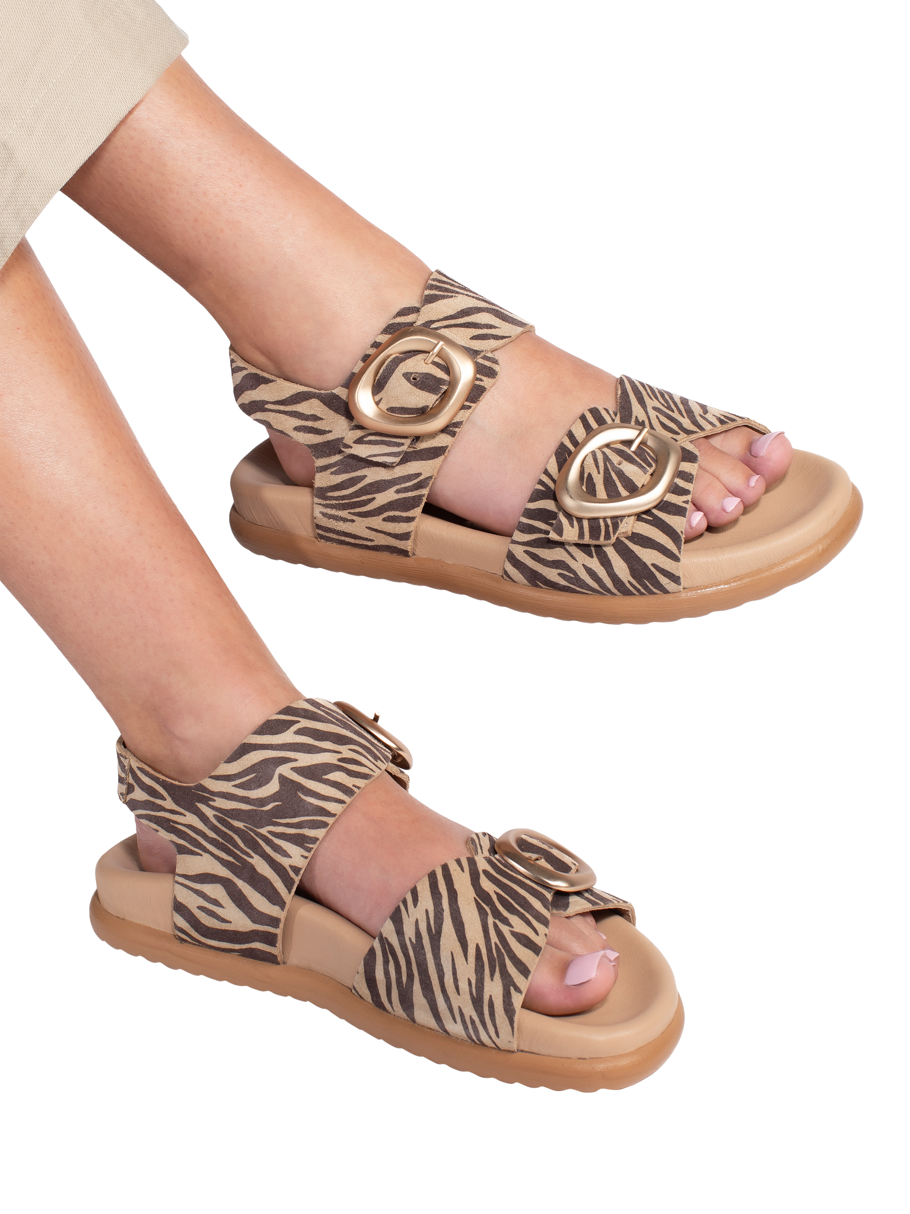 Jones BootmakerJuneau Leather Buckled Sandals, Zebra