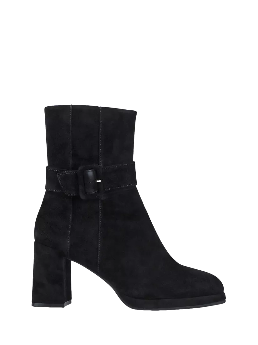 The high block heel provides stable elevation, while the clean zip-up design ensures effortless wear. Versatile and polished, equally suited to tailored office looks or elevated weekend dressing.