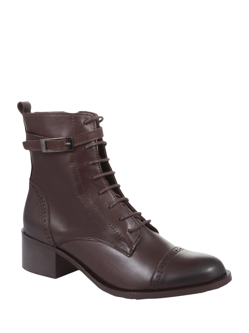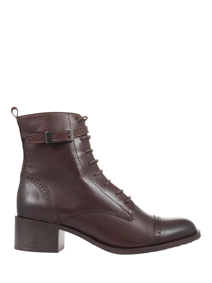 Carved from smooth leathers, Jones Bootmaker's Madie ankle boots will keep you in chic company through the cooler seasons. Sculpted to sit above the ankle, these are presented with a classic lace-up fastening and subtle brogue punching across the toe, poised on a low block heel with inside zip fastening, these boots are suited for every ensemble, be it floating floral dresses or skin-tight jeans.
