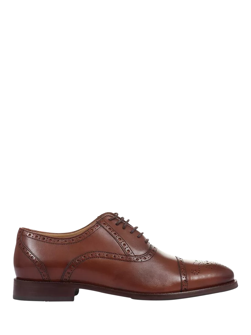 Never underestimate the impact of power dressing, a classic leather formal punctuated with brogue detailing across the Oxford silhouette. Created with smooth polished leathers with traditional toe cap and almond toe, padded sock and tongue adds comfort to your formal edits.