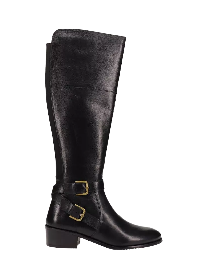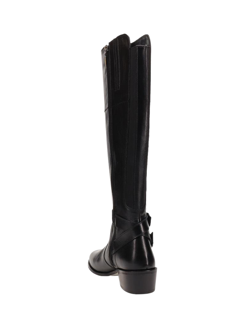 These buckled leather long boots, crafted from carefully selected leather, offer an impeccable fit with their large width calf fitting. The sleek silhouette is elevated by a functional buckle and zip-up fastening, ensuring lasting comfort and ease of wear. Perfect for both casual outings and formal occasions, these boots deliver a refined, statement-making style that effortlessly stands out. Luxurious and versatile, they are designed for those who seek understated elegance in every step.