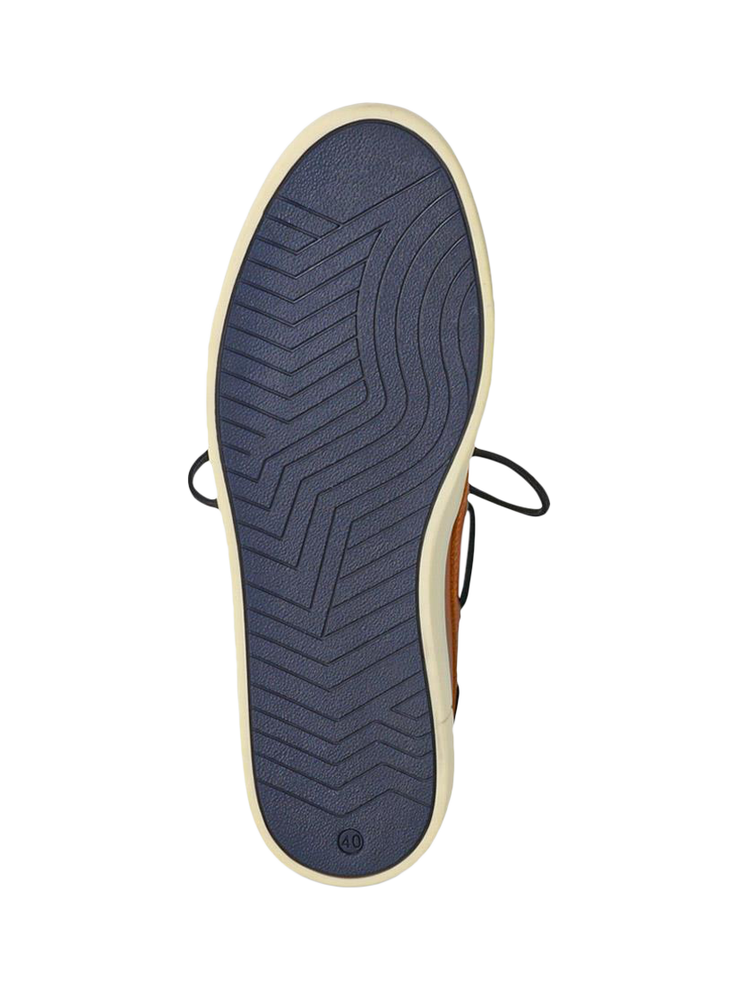 These Rhodes leather boat shoes from Jones Bootmaker blend classic maritime style with modern comfort. The slip-on design is complemented by laces for a secure and tailored fit and is completed with a chunky sole, premium leather upper, insole, and lining.