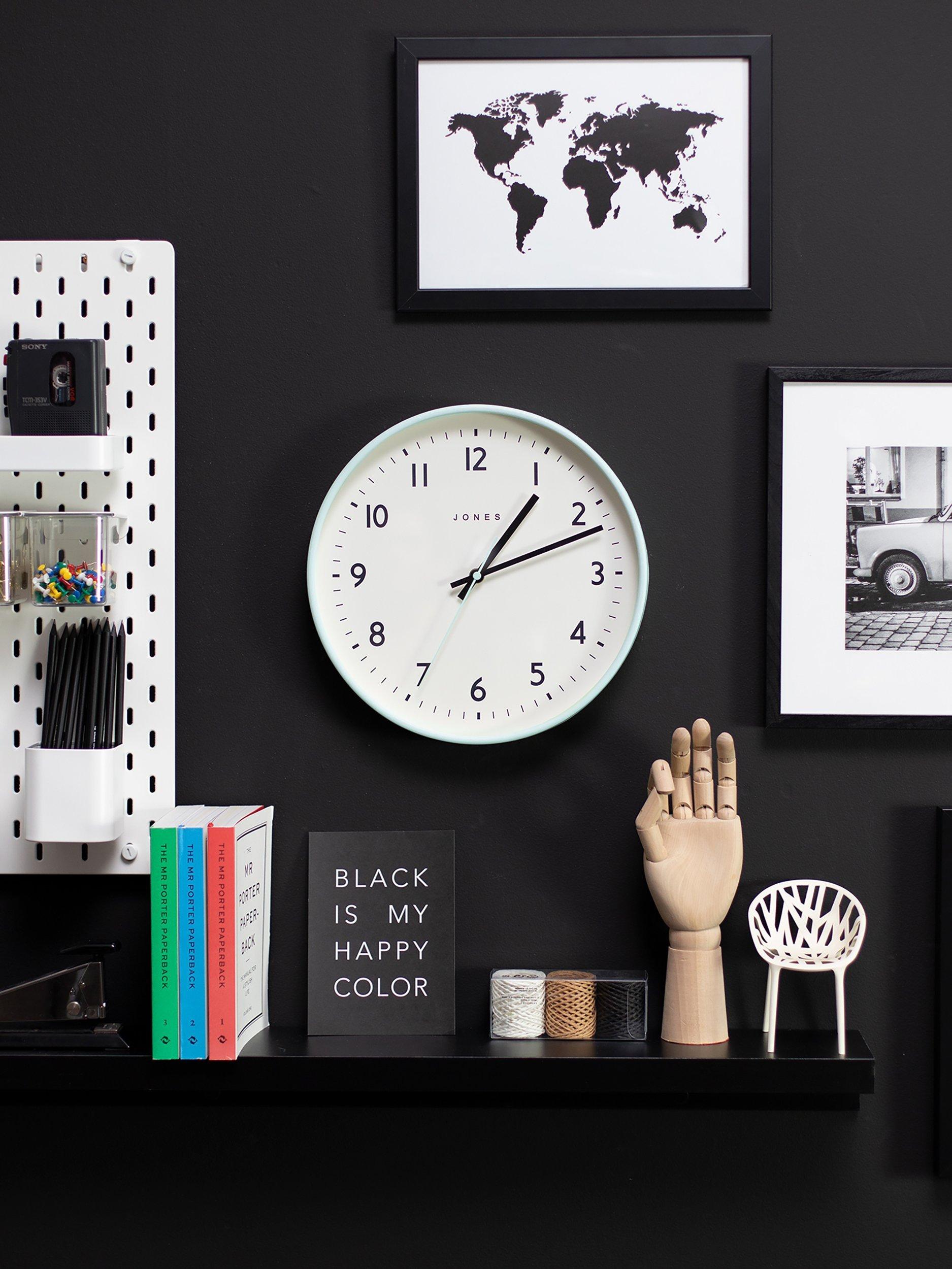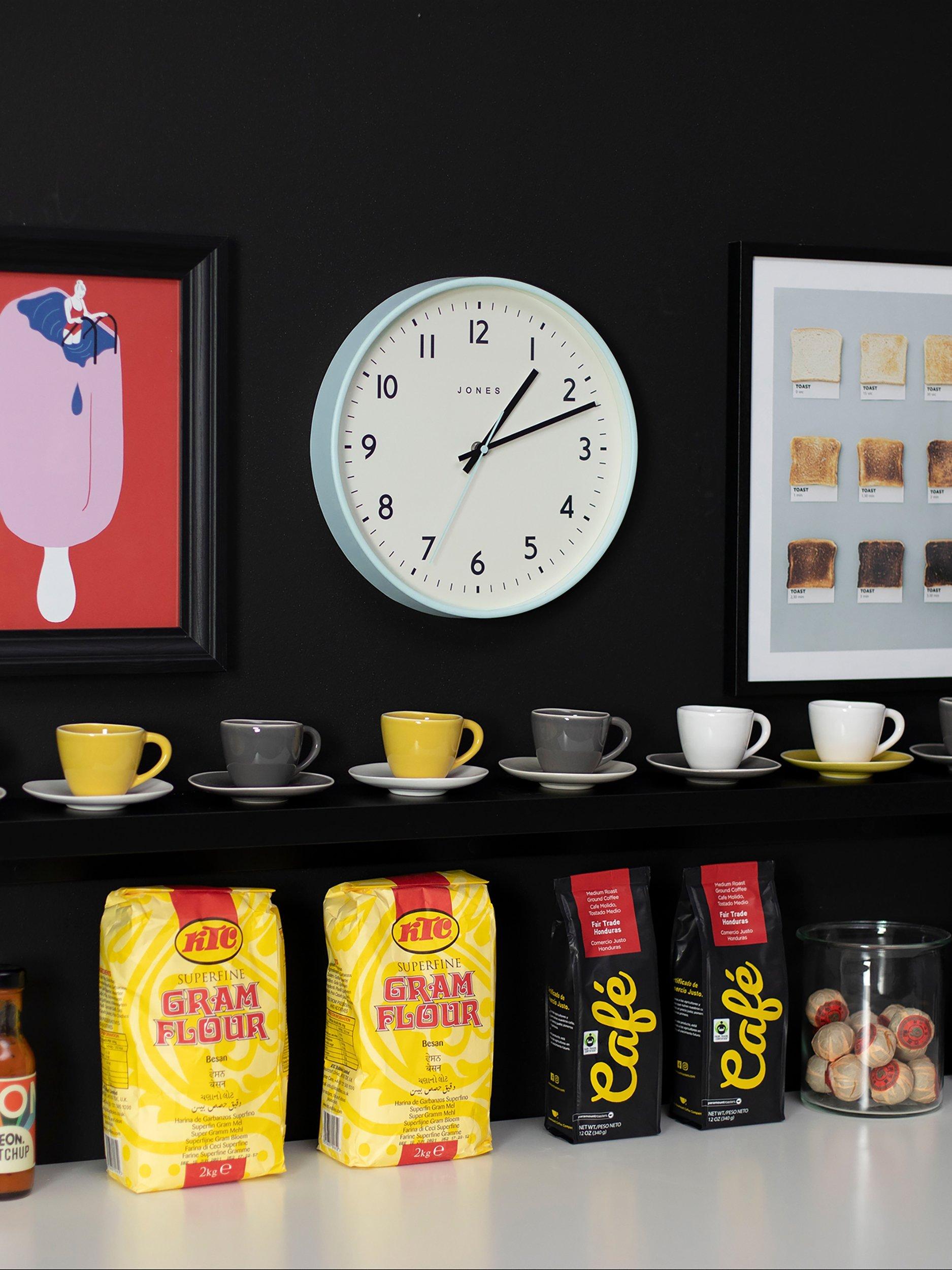 A modern wall clock from the official Jones Clocks collection. A contemporary case and easy-to-read Arabic numeral dial are set behind a flat glass lens. This on-trend wall clock will hang happily in the kitchen or living room, adding the finishing touch to your decor.