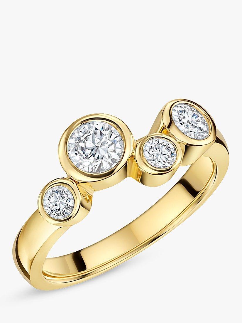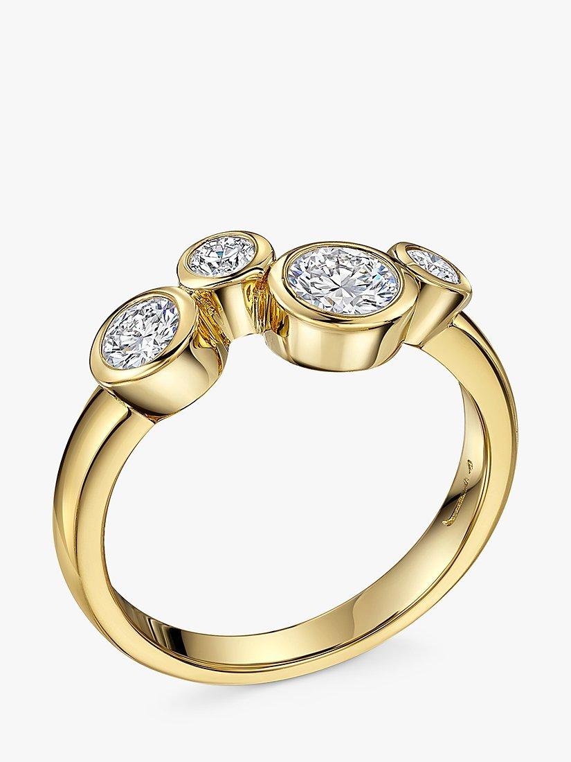 A unique design, this ring is set with 4 white zirconia stones of the finest AAA-graded quality, floating in their settings like a row of tiny bubbles.