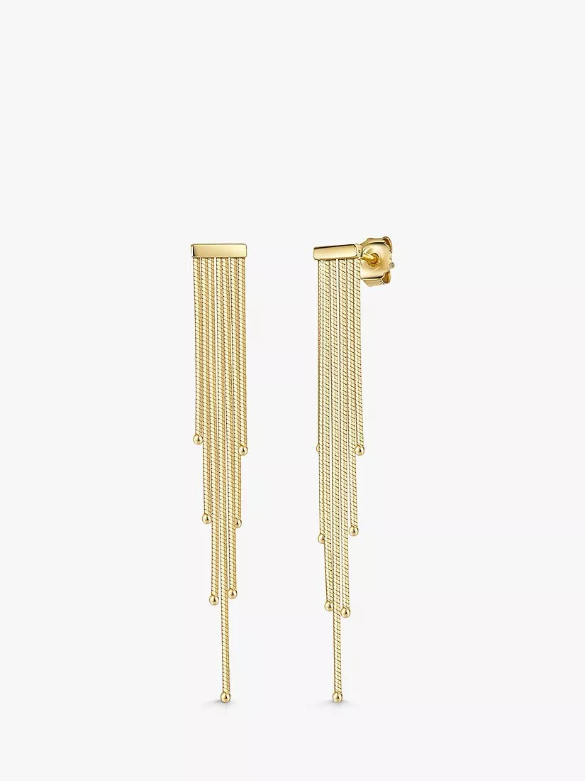 These drop earrings feature multiple tassels hanging from a flat top bar and accentuated with polished beaded ends. For pierced ears only.