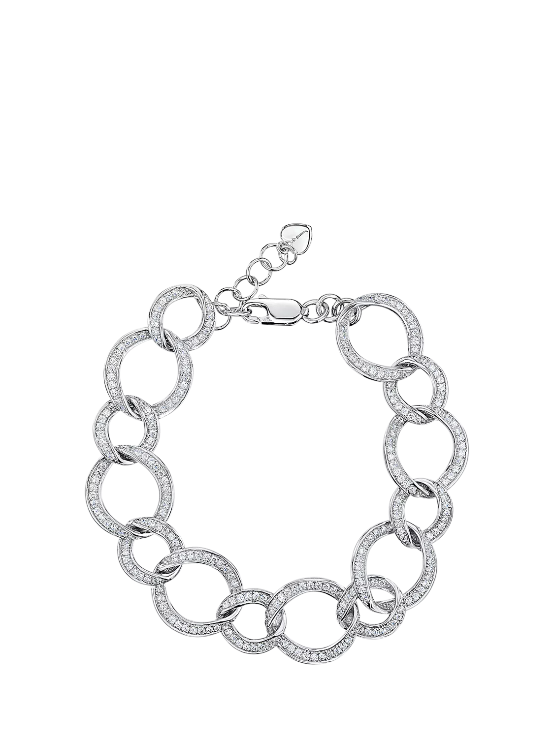 A sterling silver and 1mm cubic zirconia encrusted circle link bracelet.