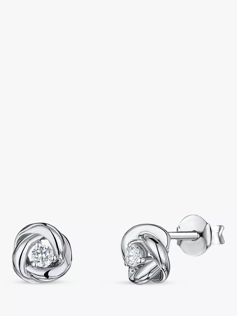 The earrings are made from sterling silver and feature an intricate shape consisting of overlapping cross links. The centre of the earrings is set with a glistening cubic zirconia stone. They fasten with butterfly posts that are for pierced ears only.