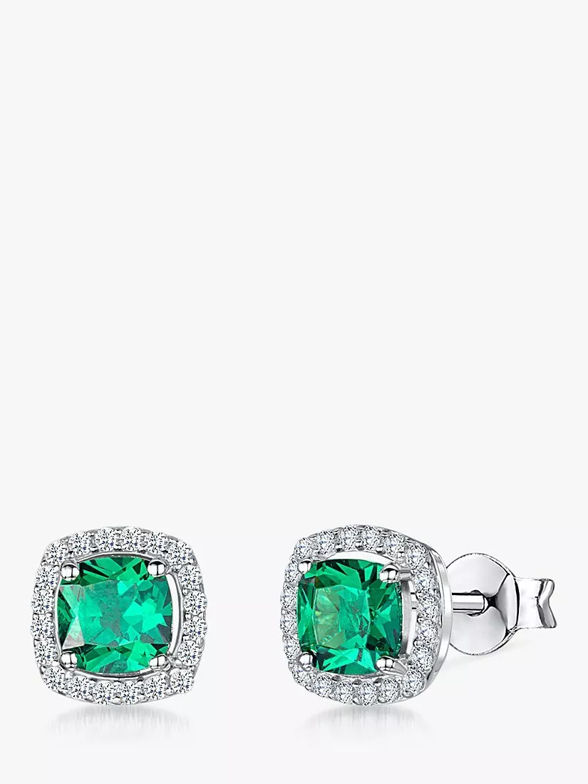 Crafted from traditional sterling silver, the design presents a smart cushion-cut shape. The centre is set with a faceted cubic zirconia in a choice of hues and surrounded by smaller sparkling stones. The earrings fasten with classic posts that are for pierced ears only.