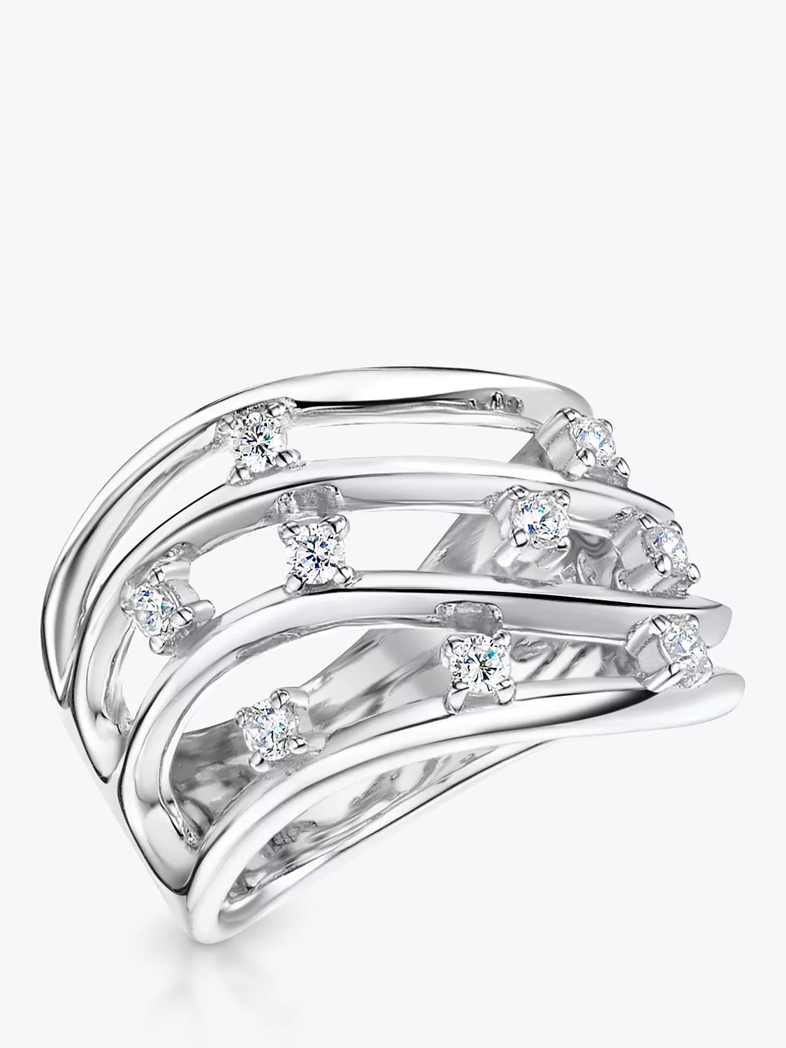 A pre-stacked design, this ring comes with four bands dotted with sparkling gemstones. It has 8 cubic zirconia gemstones of the finest AAA grade for maximum sparkle. Rhodium finished for tarnish free wear.