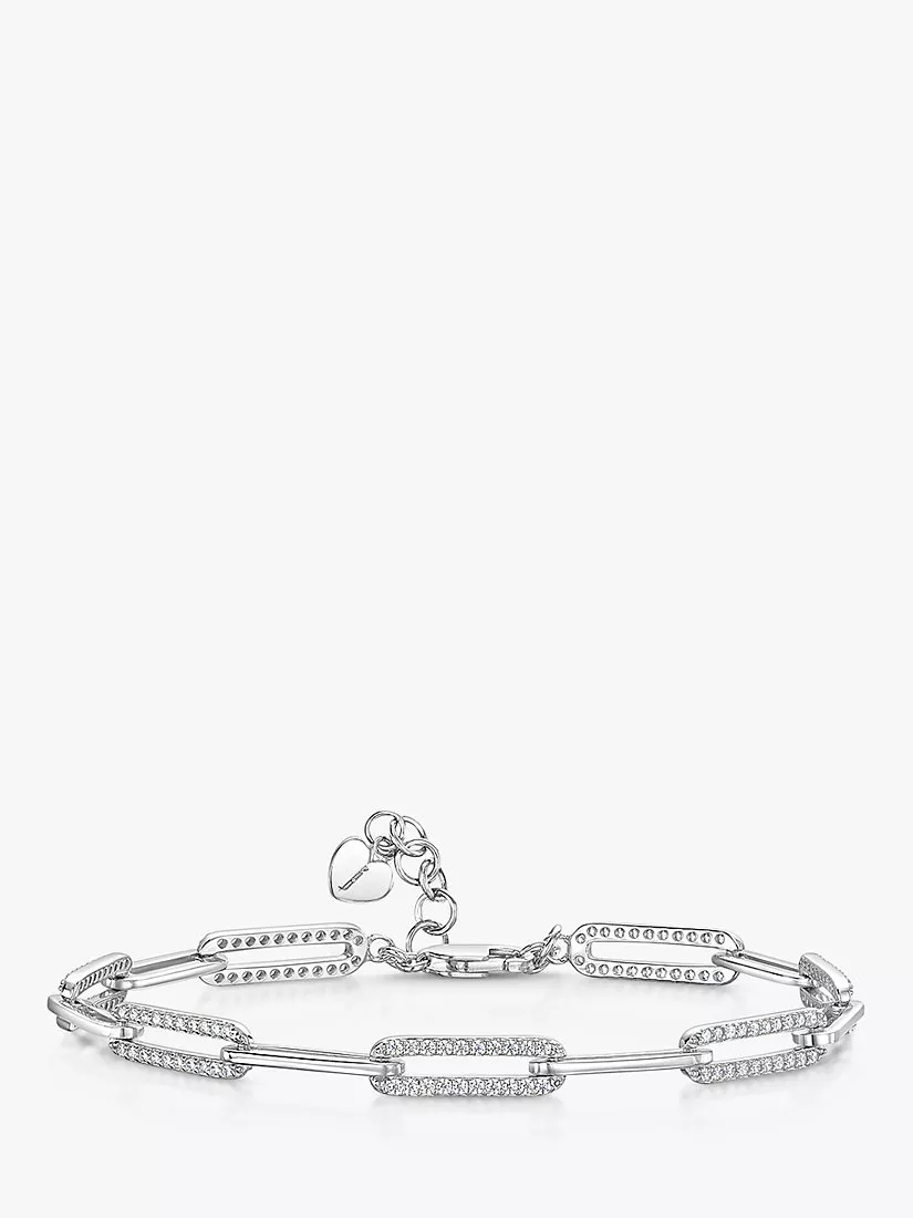 This chain bracelet features alternating large links set with cubic zirconia gemstones. The bracelet is adjustable in length for the perfect fit. It is hypoallergenic and coated for tarnish free wear.