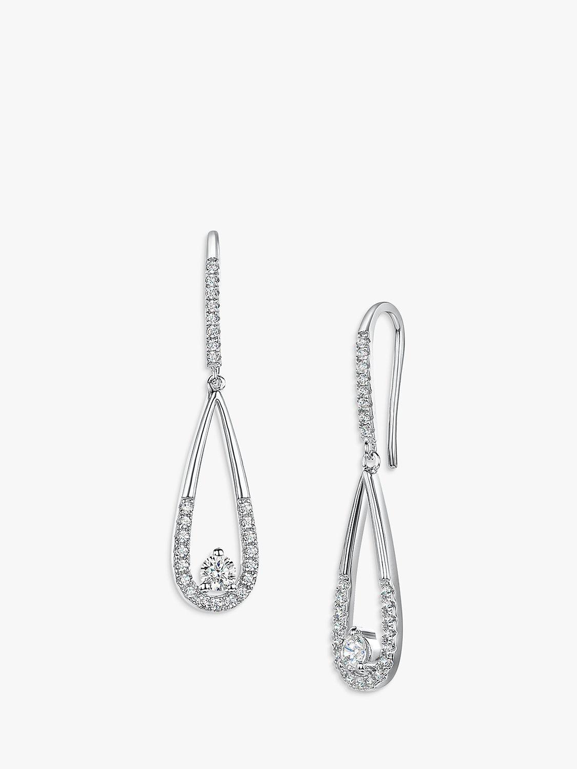 Cut to a teardrop shape and decorated with pave set, AAA Grade cubic zirconia, these earrings are a great option for a party. Secured with a fishhook fastening for pierced ears only.