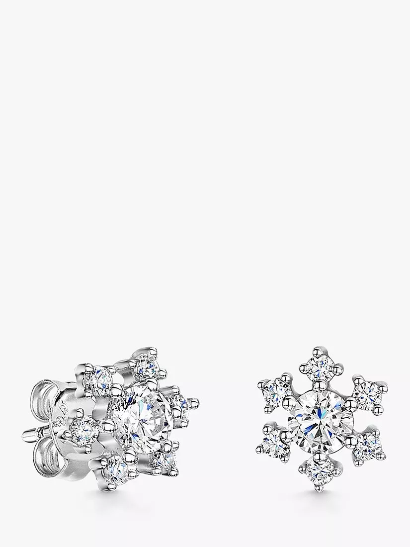 In the shape of a delicate snowflake, these stud earrings are made with the finest grade AAA cubic zirconia gemstones to ensure maximum sparkle. Secured with post fittings, these earrings are for pierced ears only.