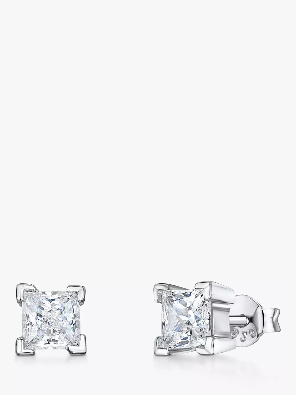 Simplicity at its best, these stud earrings feature square-cut cubic zirconia gems set with curved edges for a refined finish. Plated in rhodium for tarnish-free wear, the earrings are secured with post fittings that are pierced ears only.