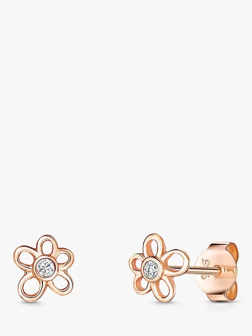 Delicate stud earrings designed in a small flower shape with a sparkly cubic zirconia centre. For pierced ears only.