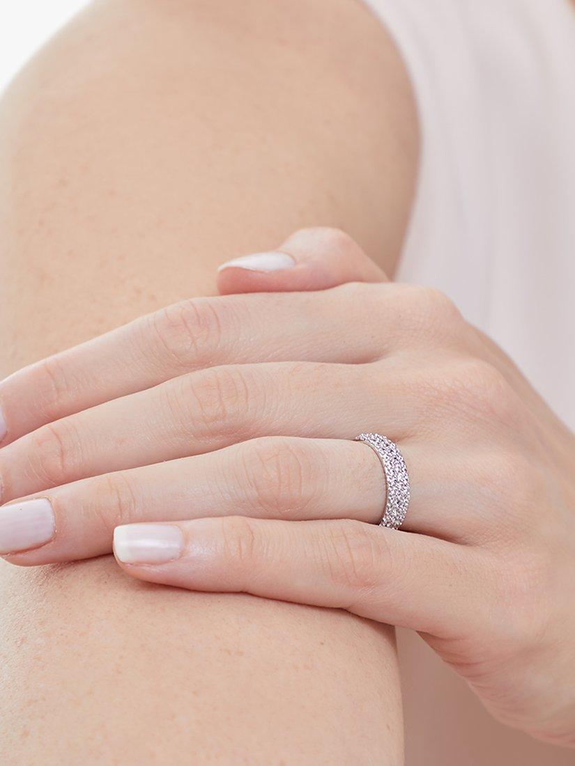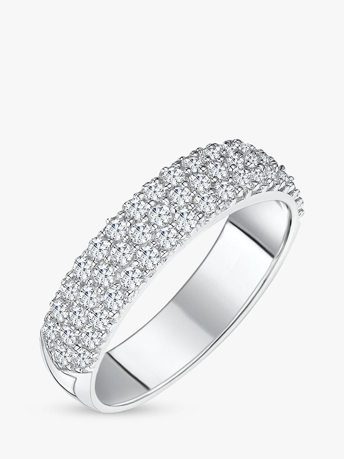 A simple band pave set with the finest AAA graded cubic zirconia gemstones to create a sparkling half eternity style.