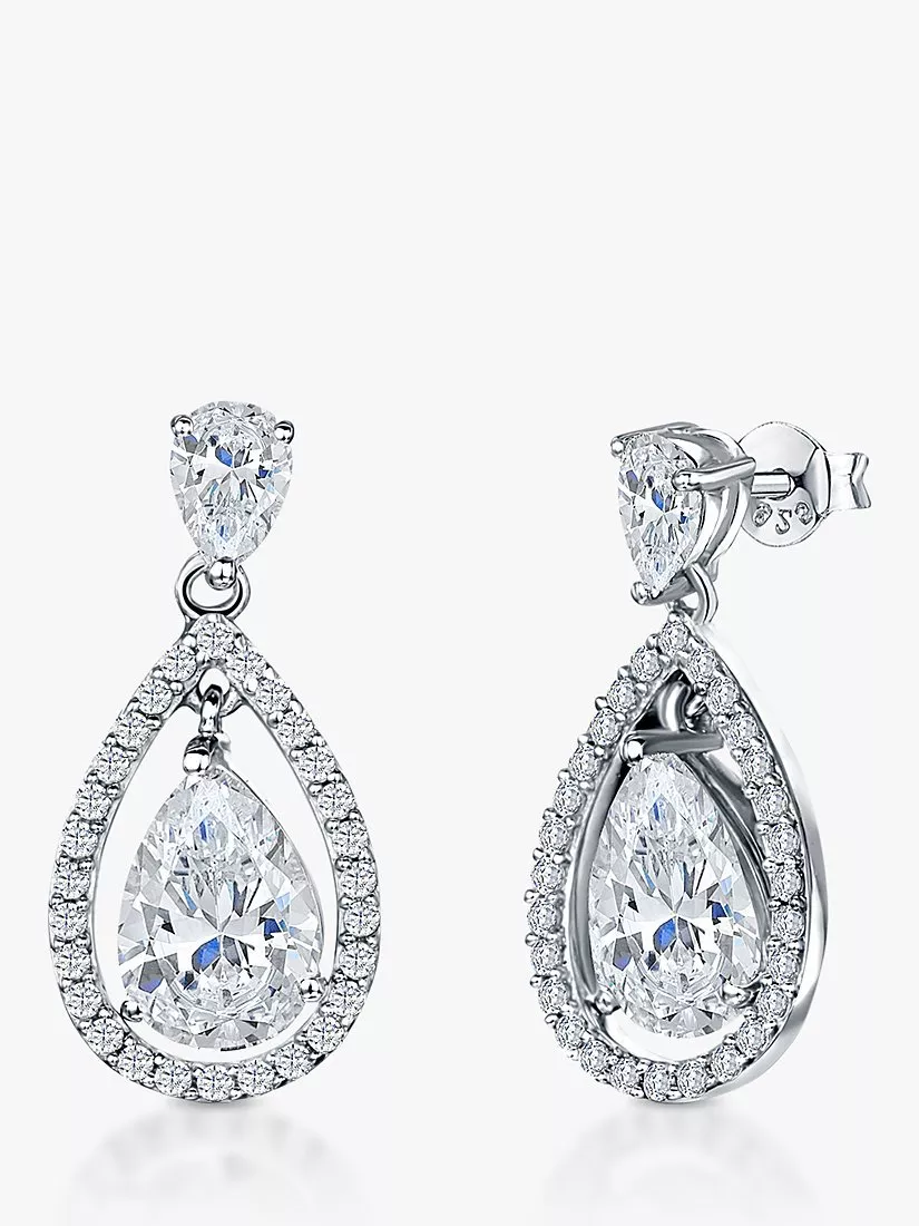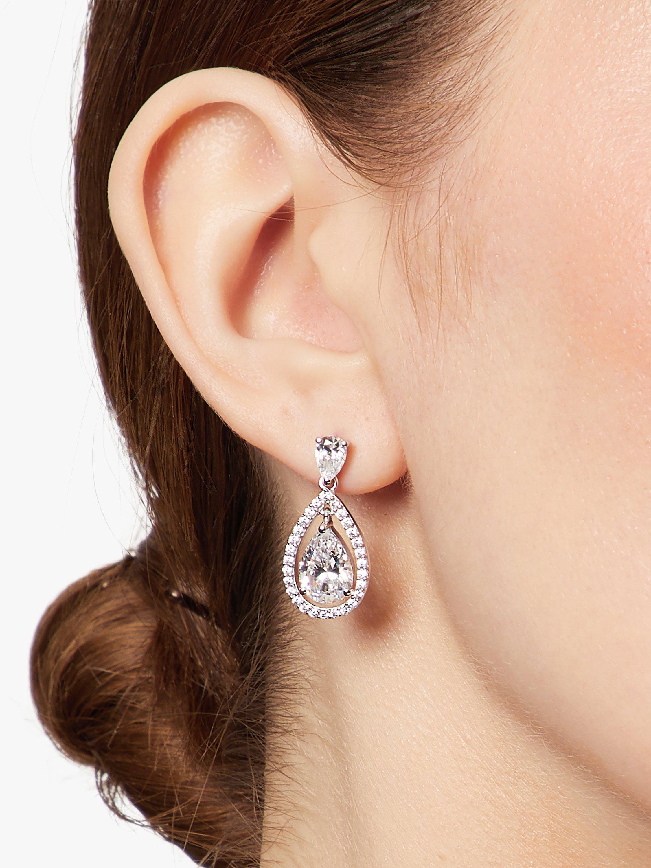 Sumptuous evening events with floor skimming dresses and leg lengthening courts call for extra sparkly jewellery. These tear drop earrings are oh-so perfect. Featuring a border of pavé set cubic zirconias, surrounding a wonderful tear drop faceted stone. Just dazzling and utterly elegant. With a pin and butterfly backing.