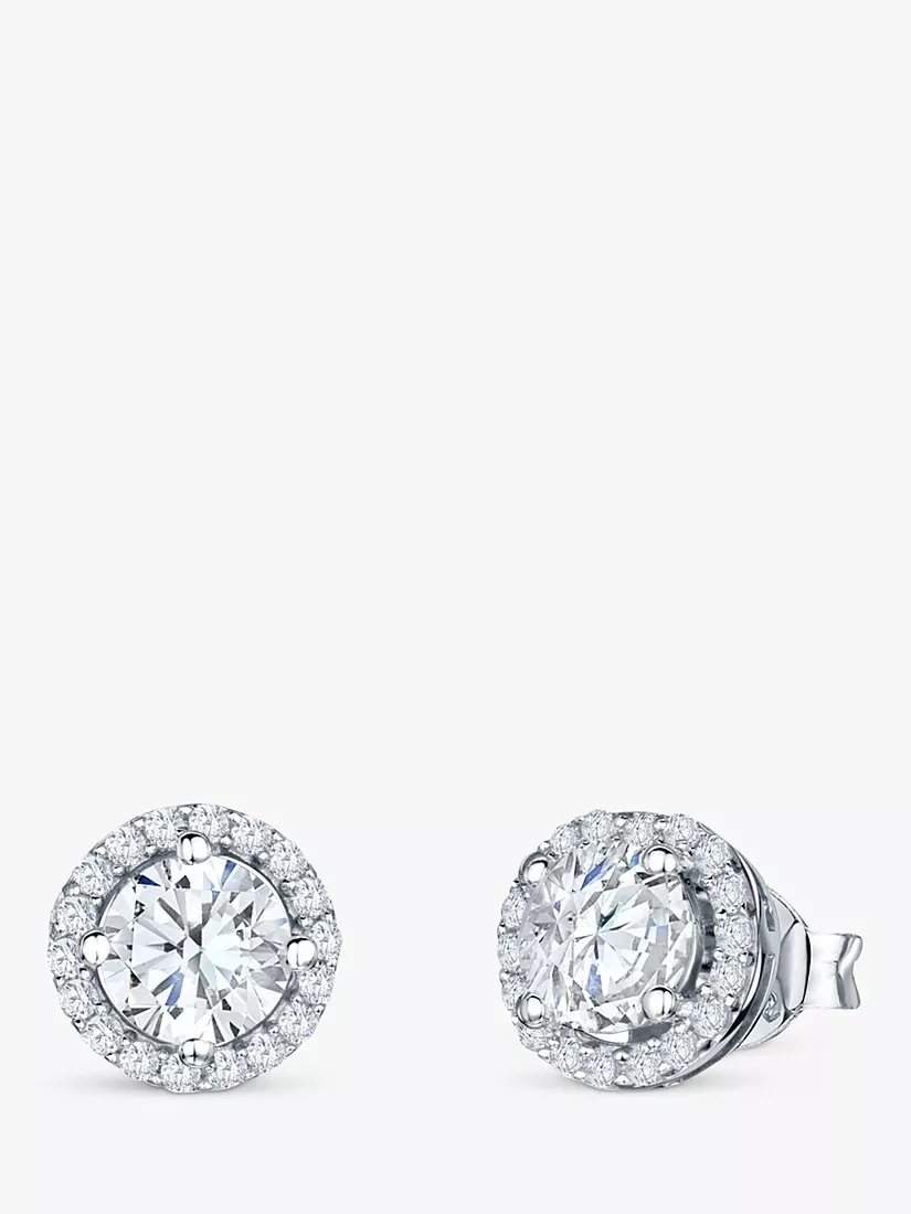 These stunning statement round stud earrings from Jools by Jenny Brown, feature an intricate pavé border setting of smaller cubic zirconia stones, flanked round a larger diamond cut round cubic zirconia. Ideal worn for a special occasion where a little extra sparkle is needed.