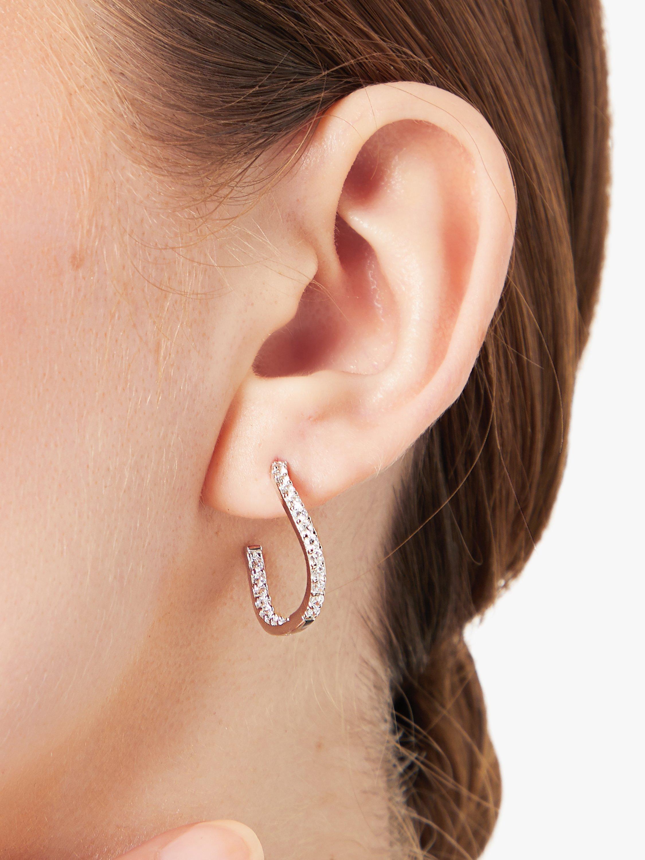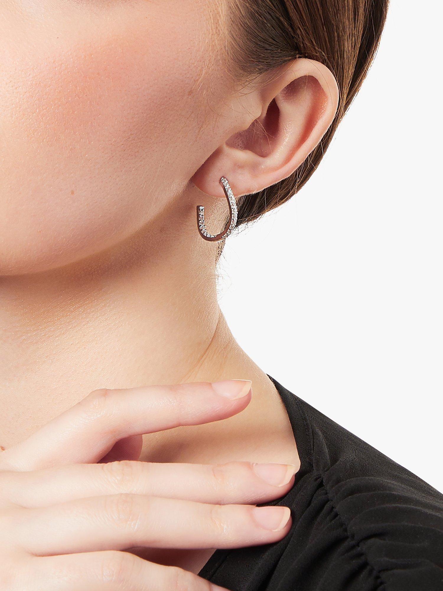 Exquisite jewellery from Jools by Jenny Brown with these 3/4 hoop earrings. A fabulous alternative to more traditional full hoop earrings, they feature a silver frame that drops 2cm and is set with cubic zirconia stones to give added sparkle to any outfit.