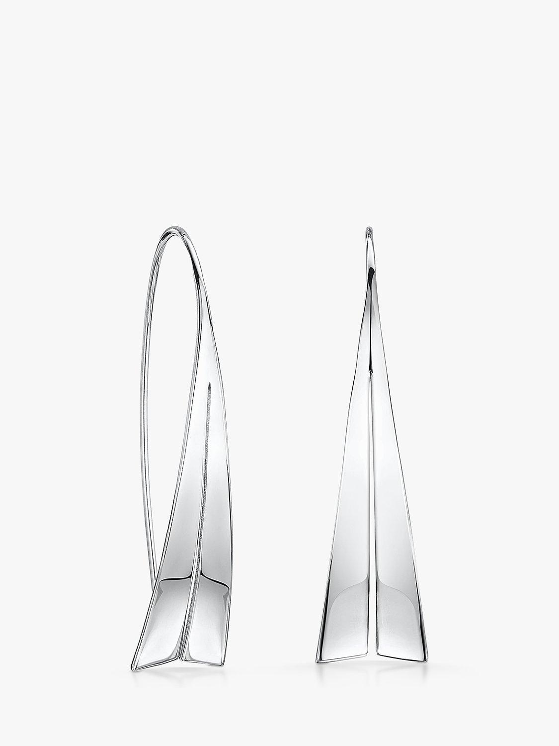 Simple, sleek and elegant, these drop earrings are designed with a minimalist split sail shape with a polished finish. Secured with post fittings, these are for pierced ears only.