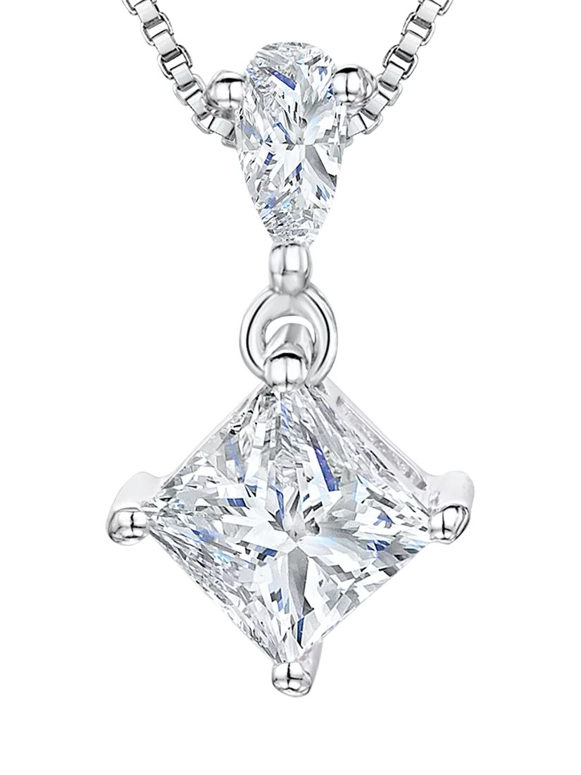 This sterling silver square solitaire pendant is set with a 6mm finest 'AAA' cubic zirconia stone.