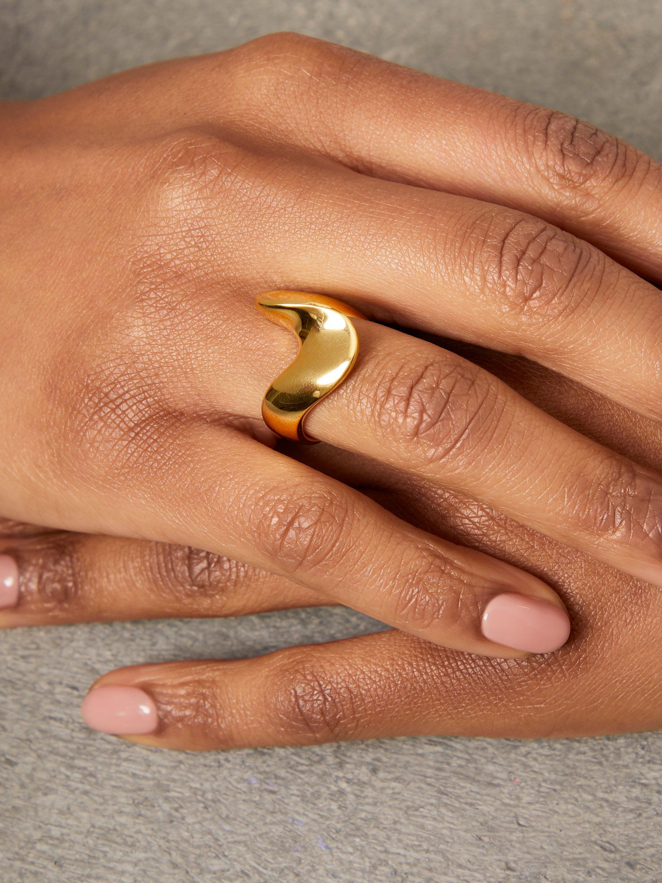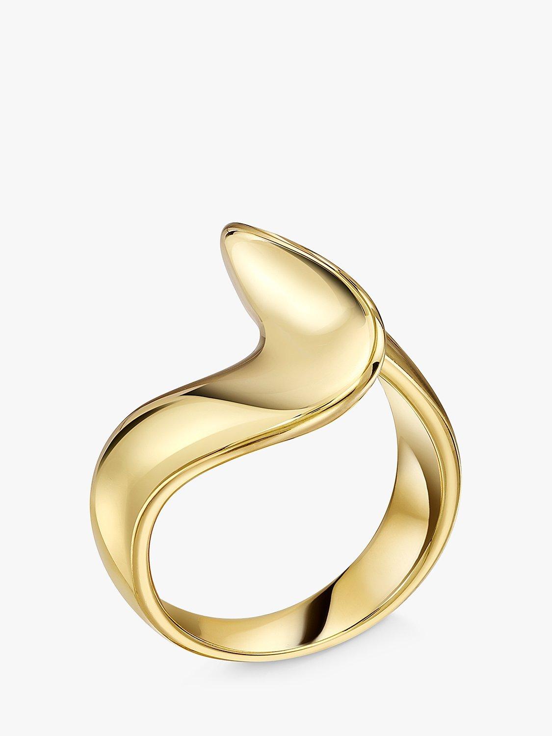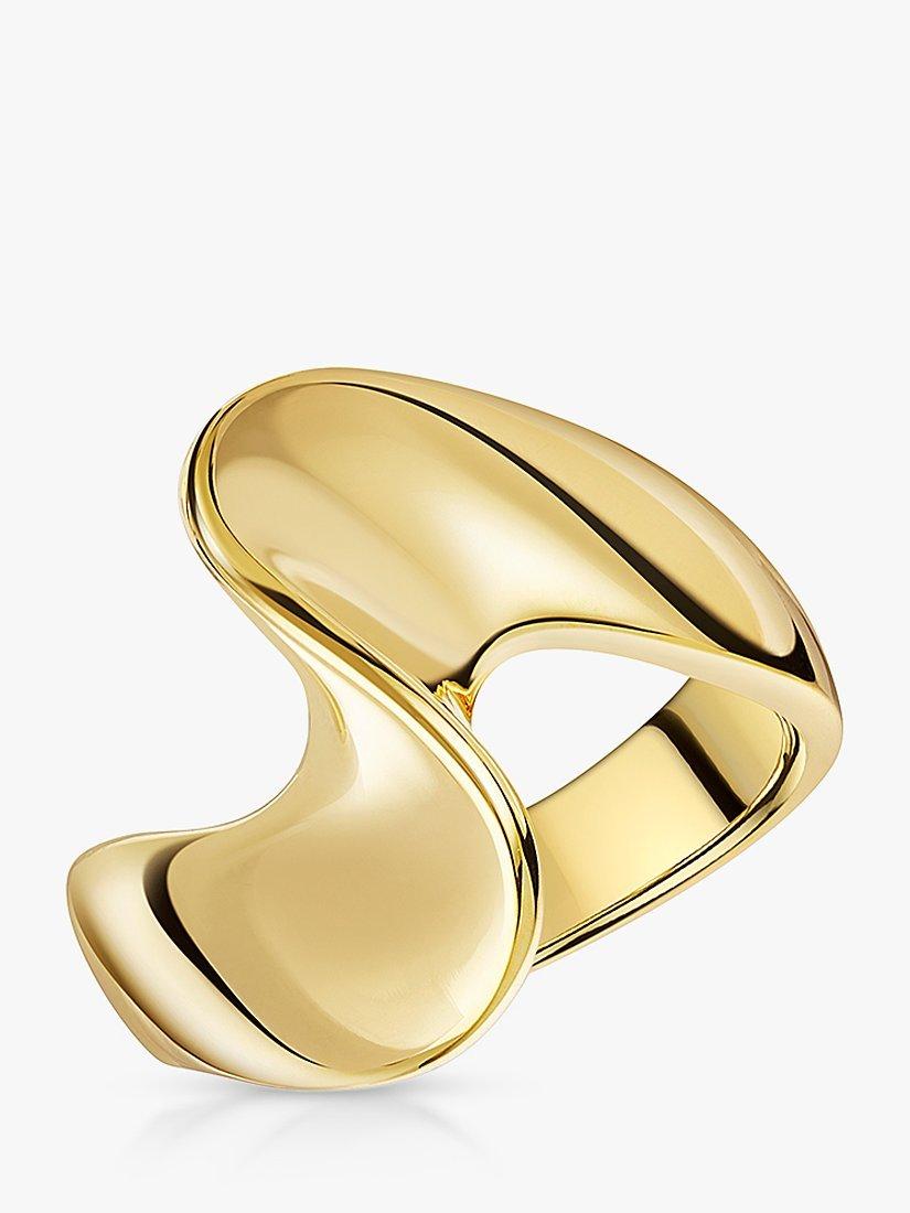 A ring with a twist. This polished band ring is made from 18ct gold vermeil on sterling silver and has a e-coating for tarnish free wear.