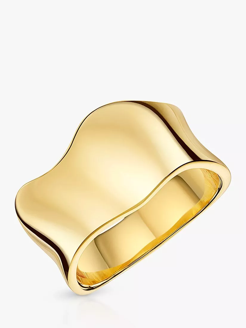 Inspired by the sea, this band ring has a wide, wavy concave design. Made from yellow gold vermeil with an E coating for tarnish free wear.