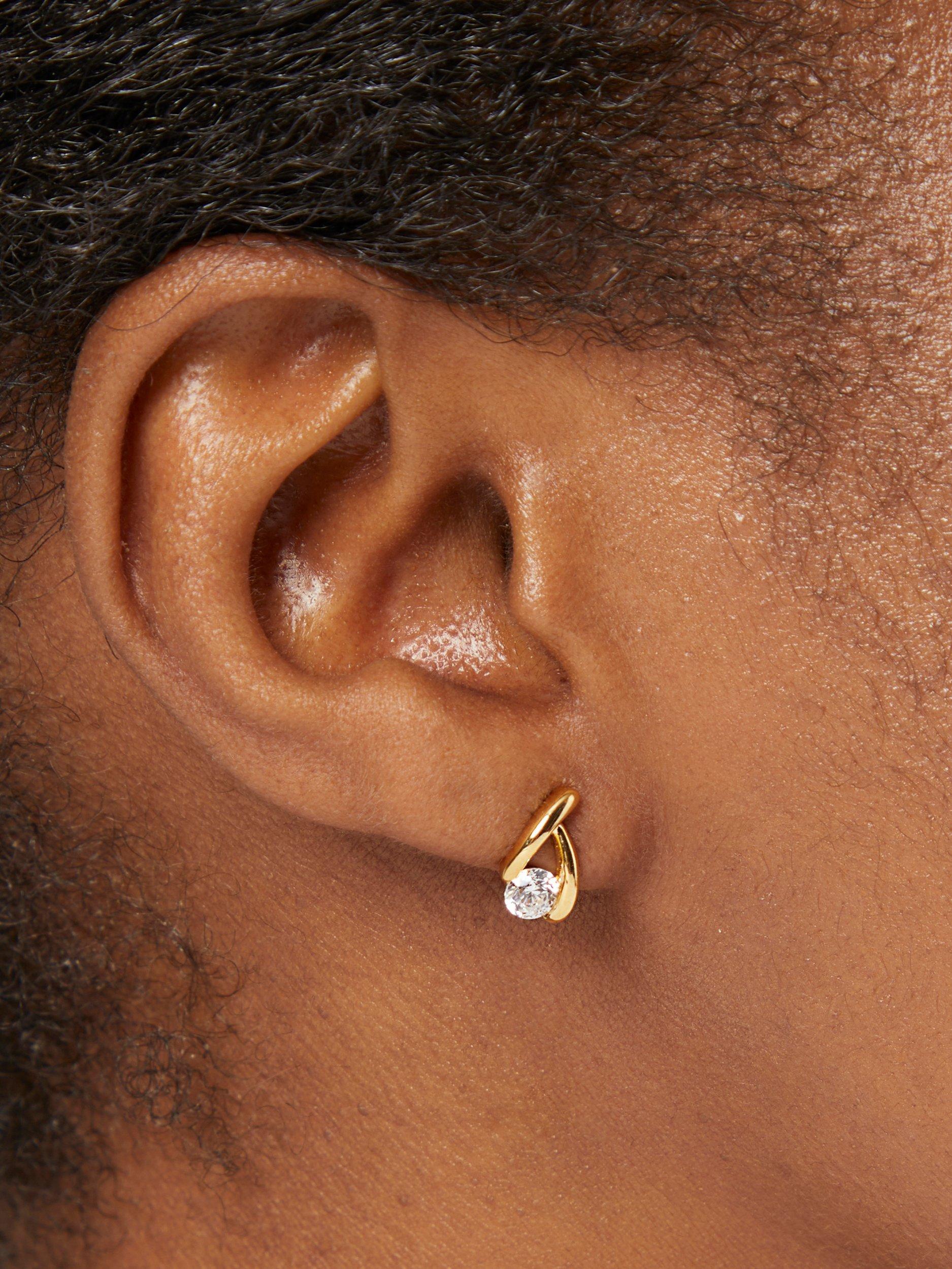 Set with a dazzling cubic zirconia detailing, these stud earrings come in an unusual, wishbone style.