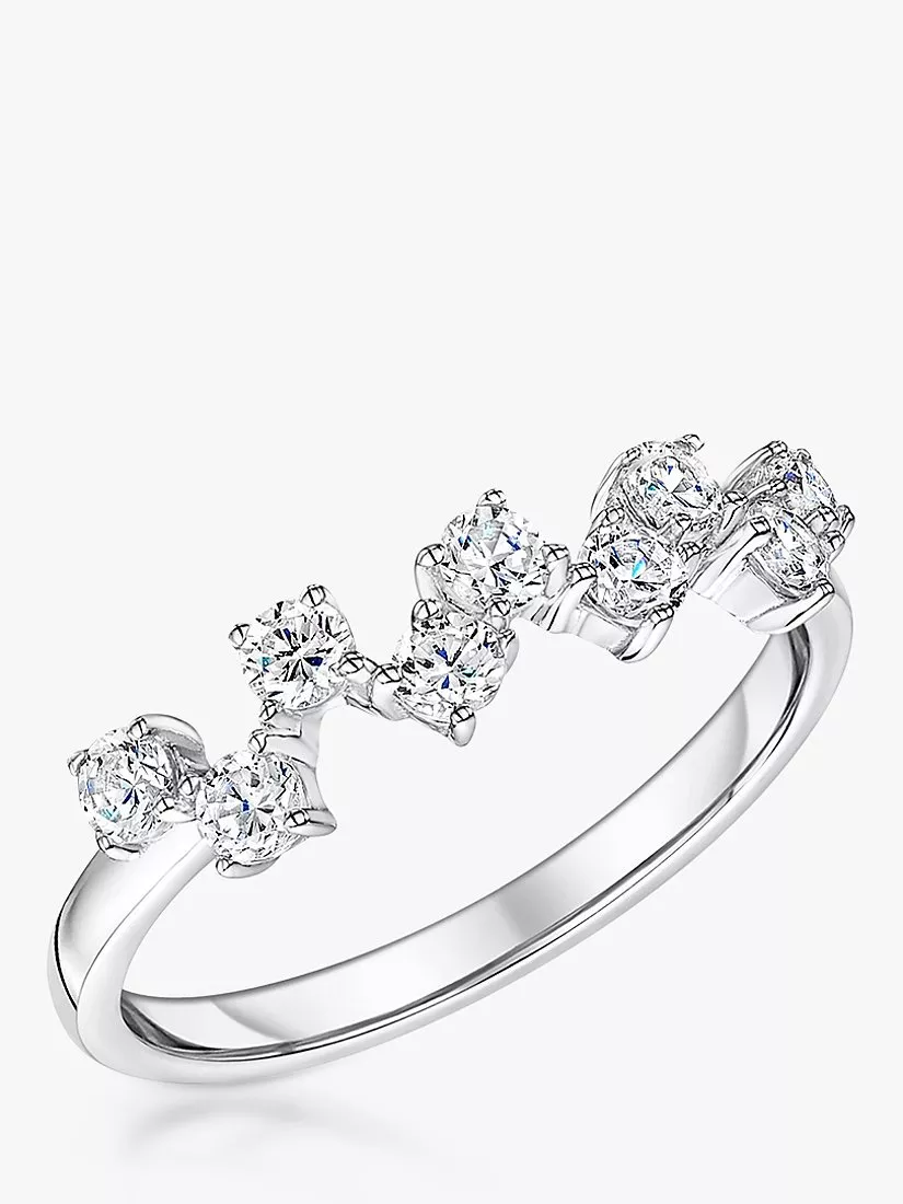 Made from sterling silver with a zig zag shape, this ring sparkles thanks to the 9 AAA graded cubic zirconia gemstones. Rhodium finished for tarnish free wear.